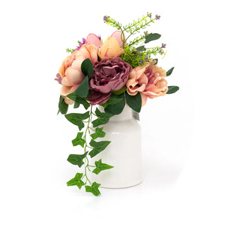 FAUX DUSKY PEONIES & BLOOMS IN WHITE CERAMIC VASE
