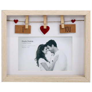 CLOTHES LINE WOODEN BOX FRAME WITH PEGS FOR 6 X 4 PHOTO - I LOVE YOU