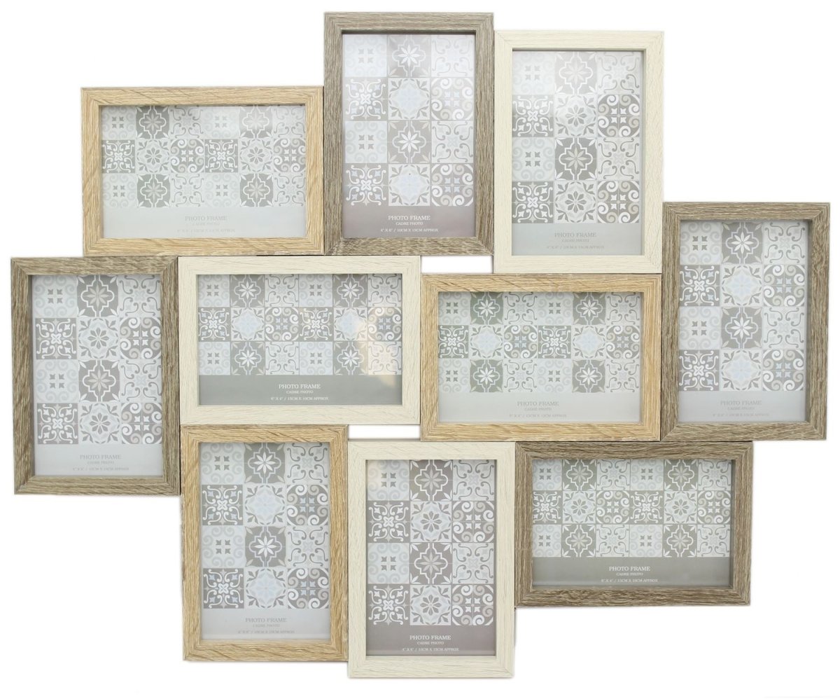 Large 10 Aperture Multi Tonal Photo Frame 6x4 | Wall Mounted Wooden Effect 4x6 Picture Frame | Photo Collage Display Family Frames