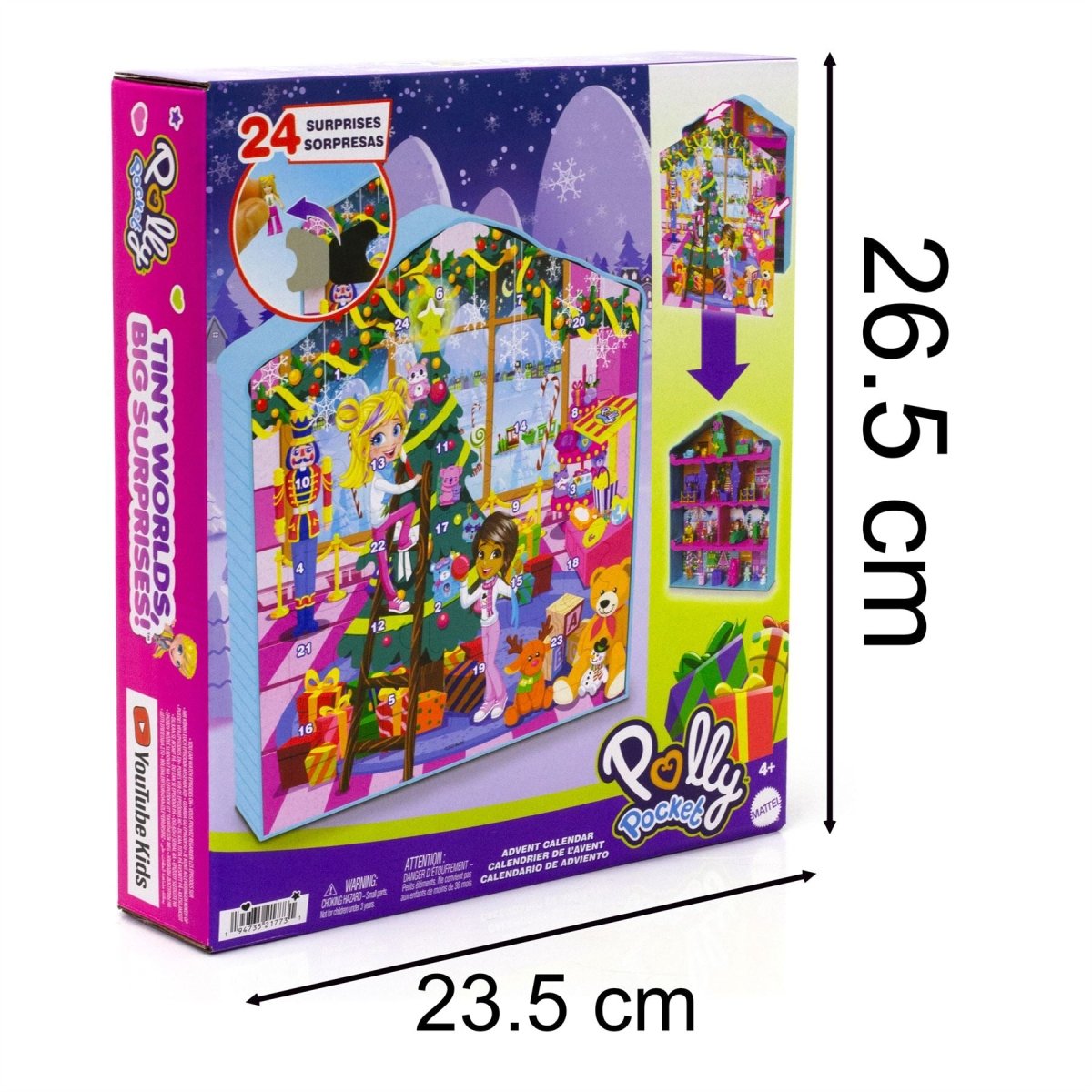 Celebrate the festive season with Polly Pocket Advent Calendar! Discover 24 surprises hidden inside a charming gingerbread house. From the very first day, kids can unwrap fun accessories like a toy car, presents, and even a Christmas tree to decorate. The