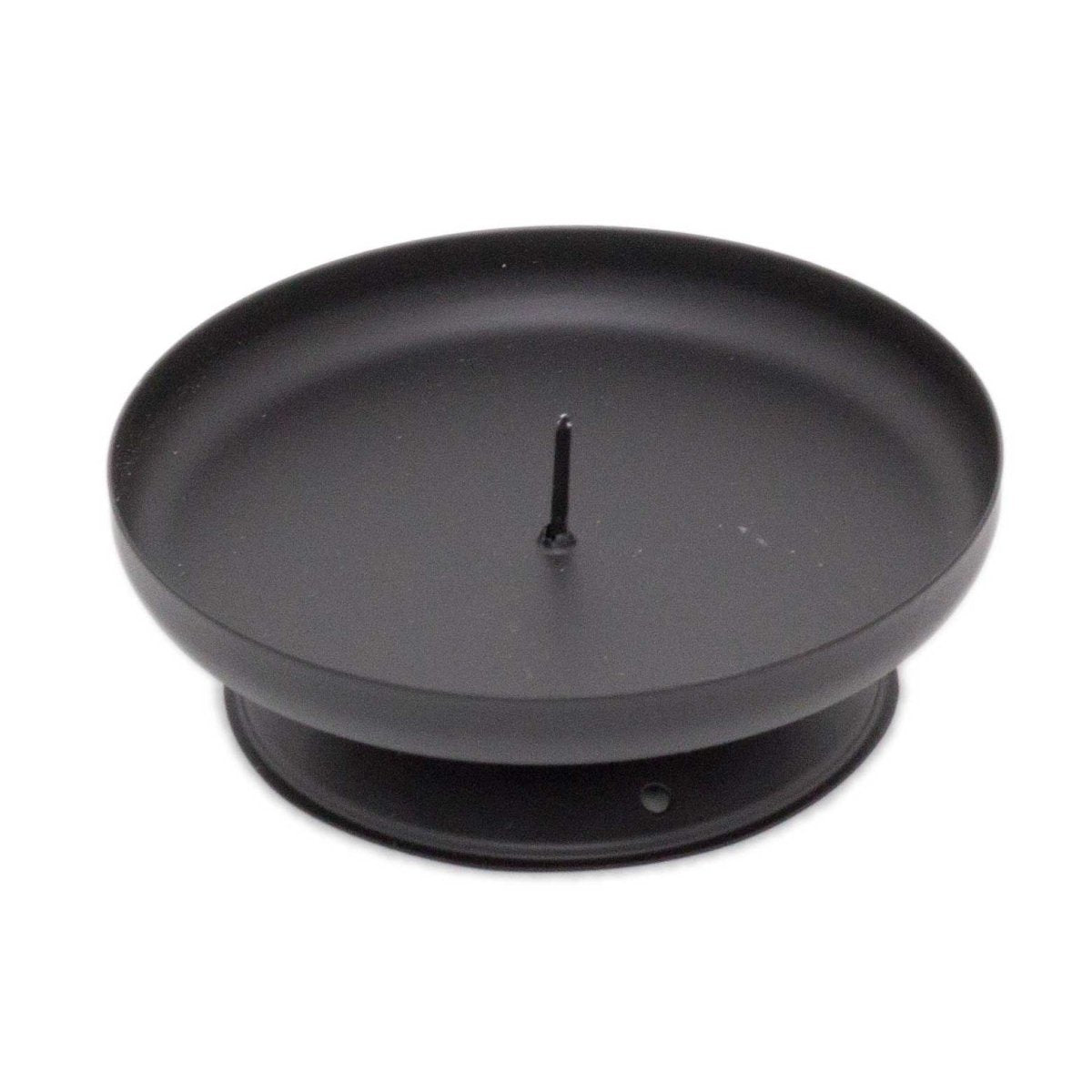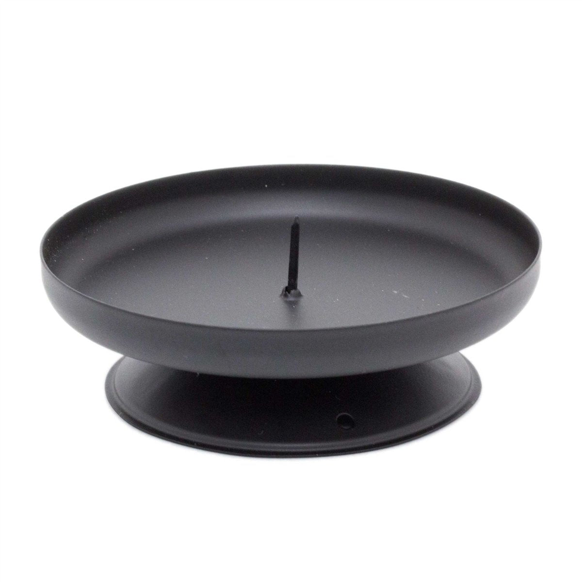 CANDLE HOLDER: Fabulously simple mat black metal pillar candle holder complete with spike to hold the candle in place. Looks super with a red or ivory candle contrasting with the black. Just perfect for protecting your surfaces whilst not drawing attention away from your decorative pieces