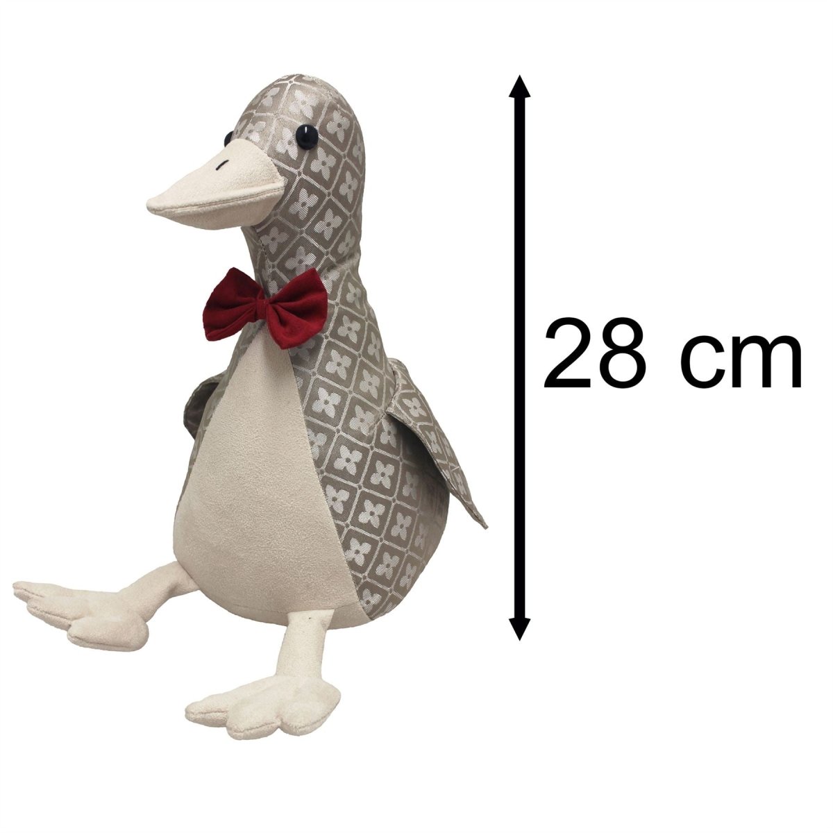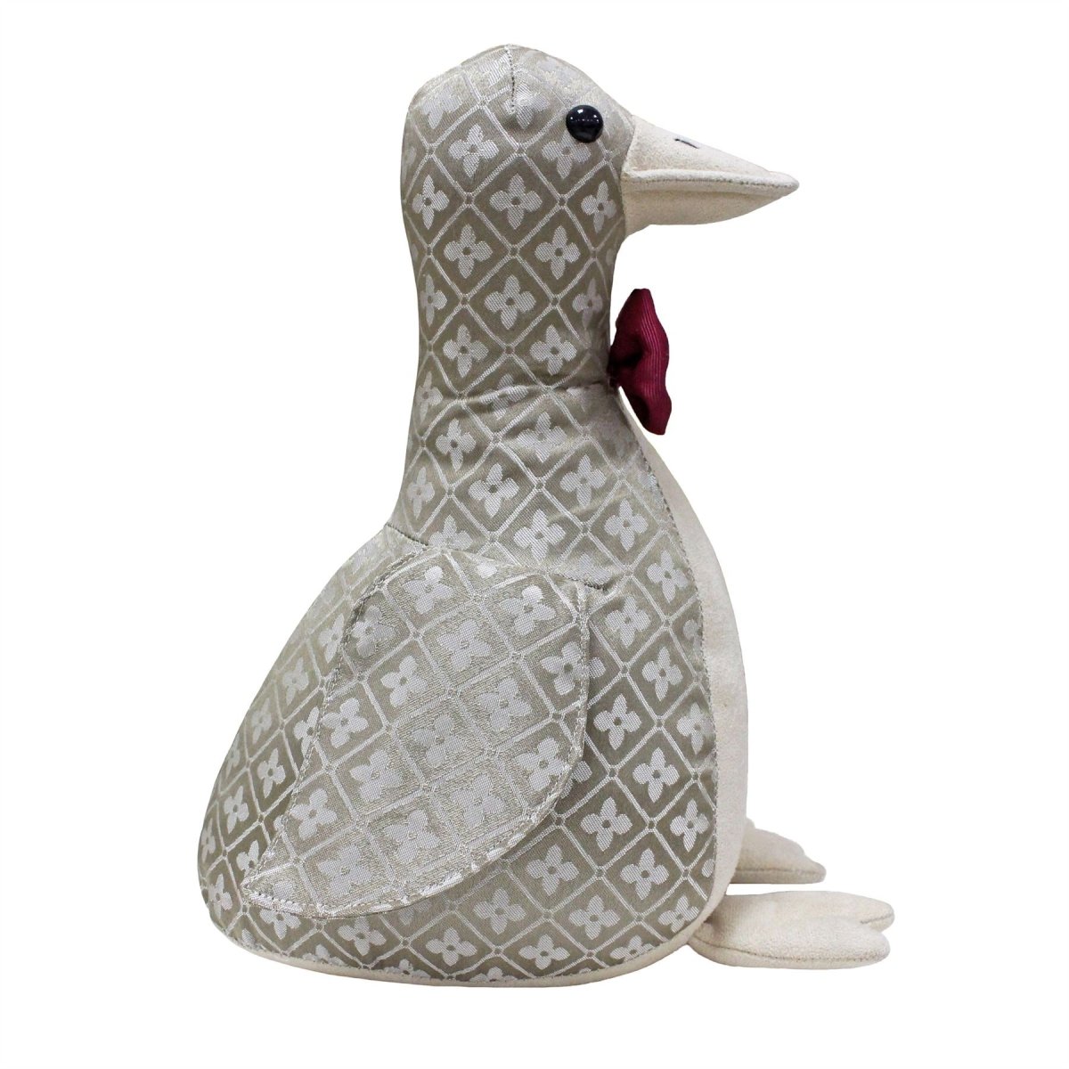QUIRKY DESIGN | Covered in a gorgeous silver and white gold jacquard pattern, Sunny is a true showstopper, complete with a fetching red bowtie and beaded eyes, this dapper duck is always dressed to impress, adding a touch of character to any space