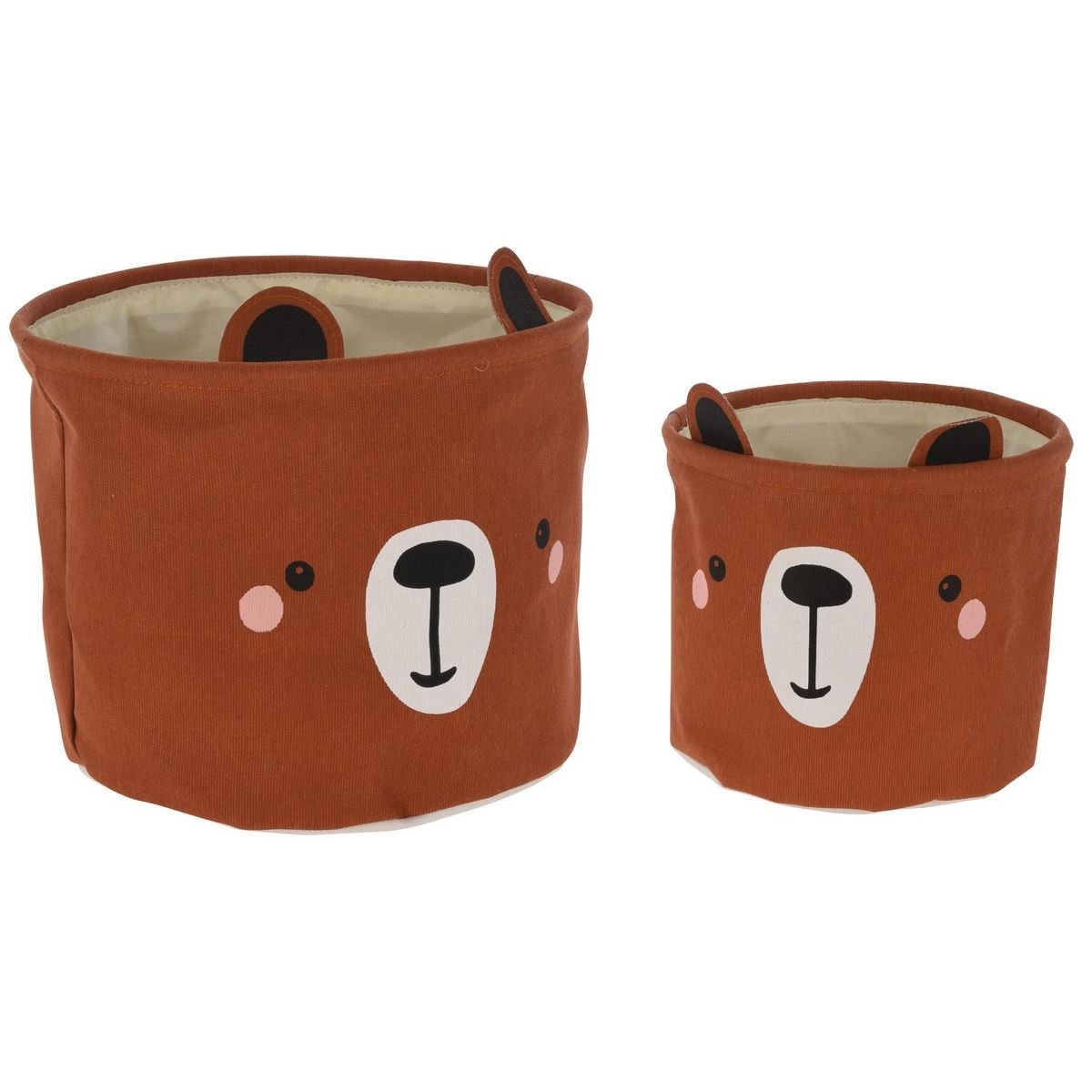 Set Of 2 Childrens Fabric Storage Baskets | Kids Toy Storage Boxes - Bear