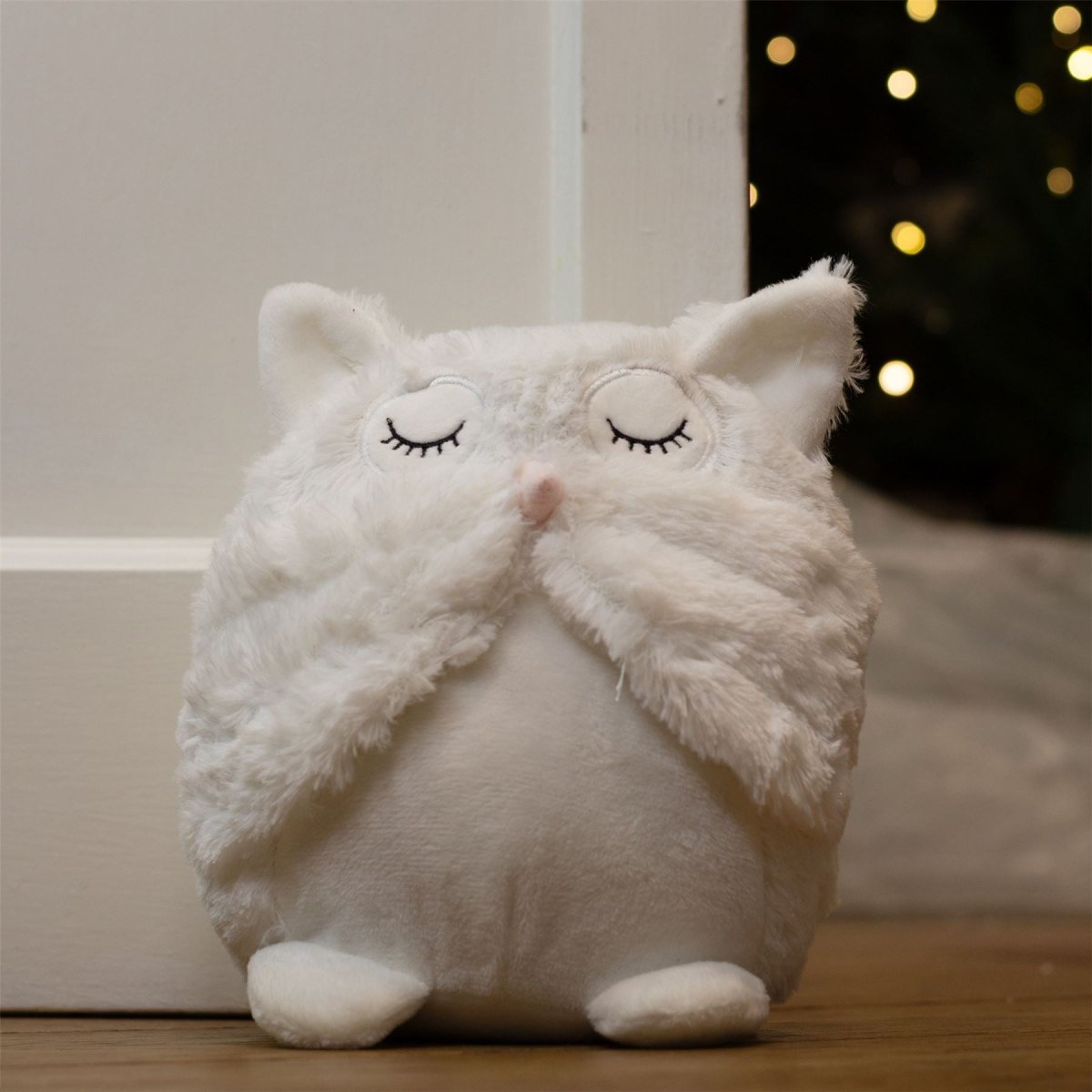 NOVELTY DOOR STOP | Made from soft plush fabric, this sweet owl showcases fluffy wings and a cute sleepy expression, adding warmth and character to any room