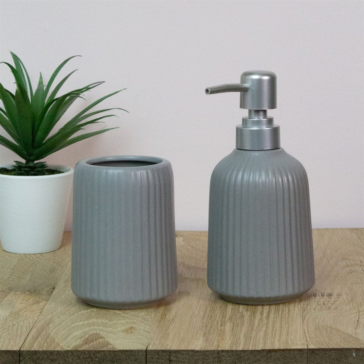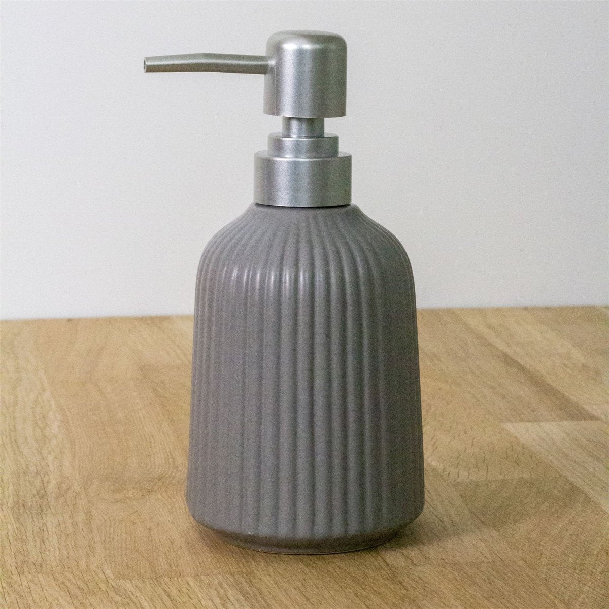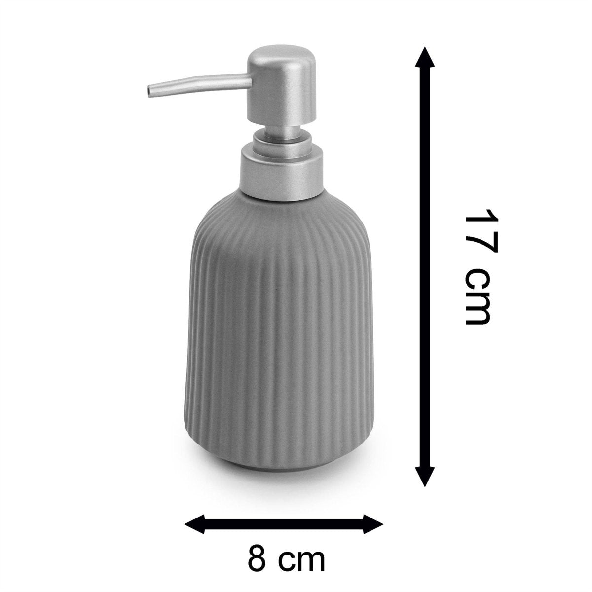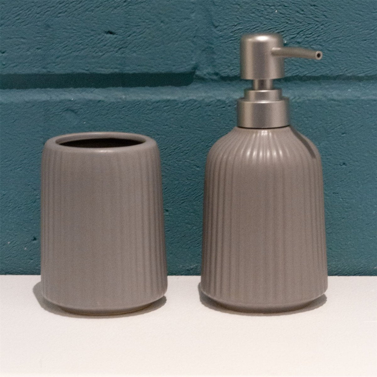 Our ceramic bathroom soap dispenser features a gorgeous matt grey finish with a ridged design, adding a touch of sophistication to your bathroom decor