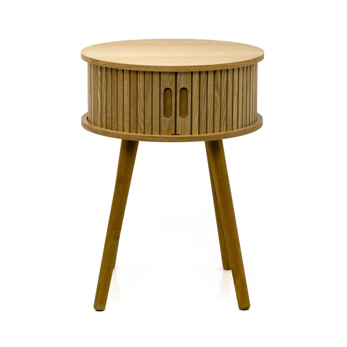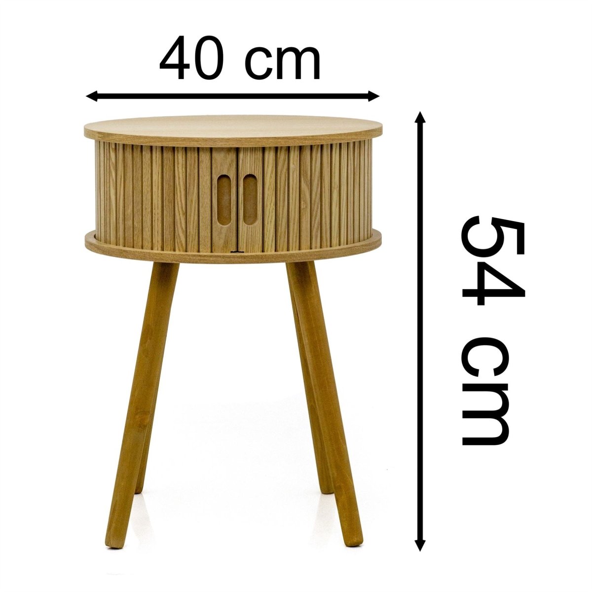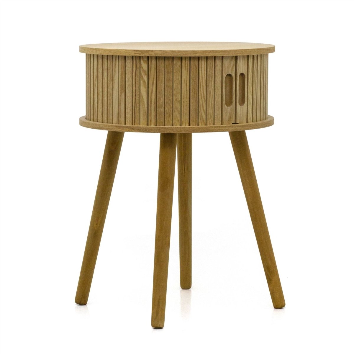 SIDE TABLE | This wooden round slide door cabinet is a charming and practical addition to any living space. Its contemporary Nordic design exudes effortless elegance, infusing your home with a modern-retro vibe that never goes out of style