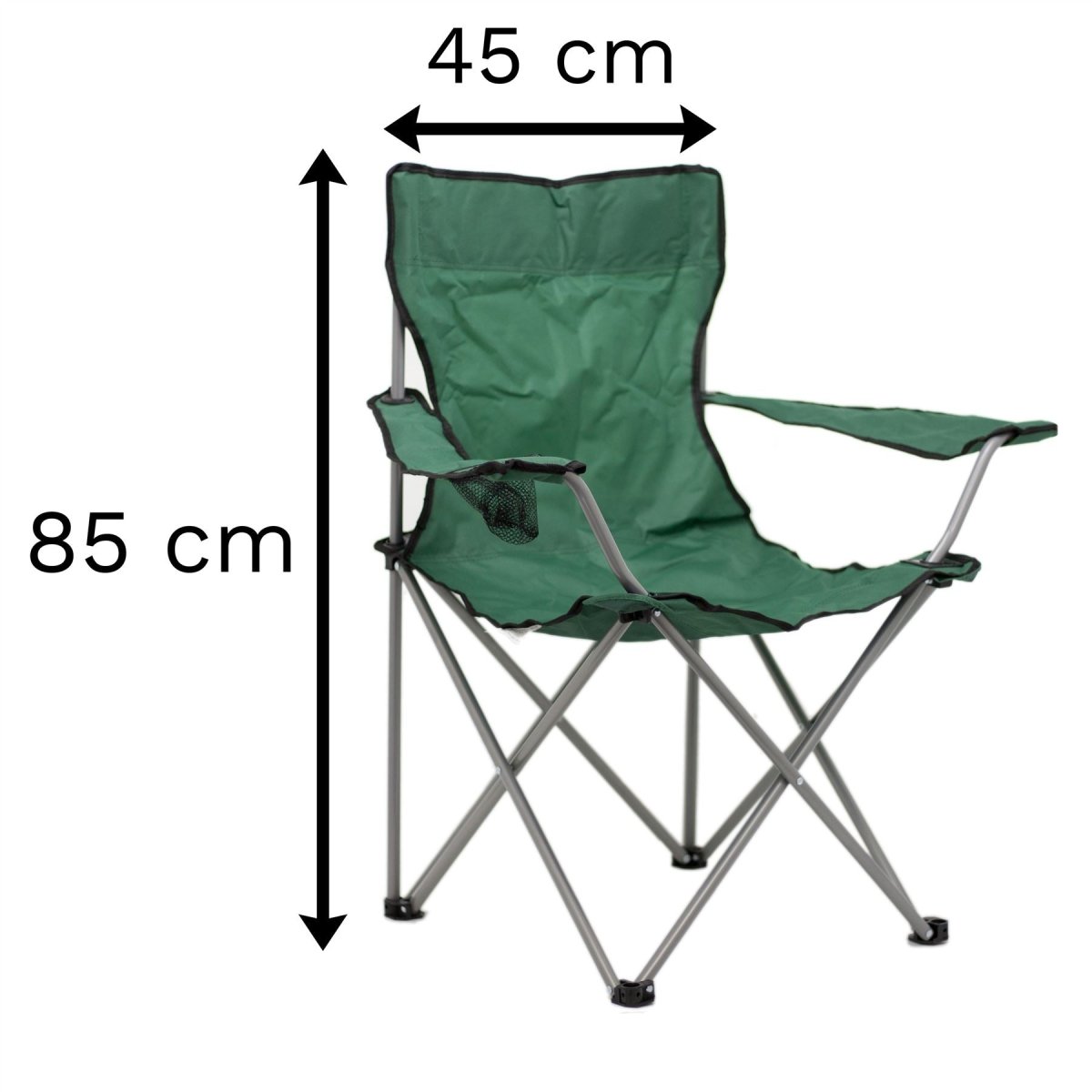 FOLDABLE CAMP CHAIR: No assembly required - Neatly folds flat when not in use. Product dimensions 85cm high (top or head rest) Seat 50cm x 40cm