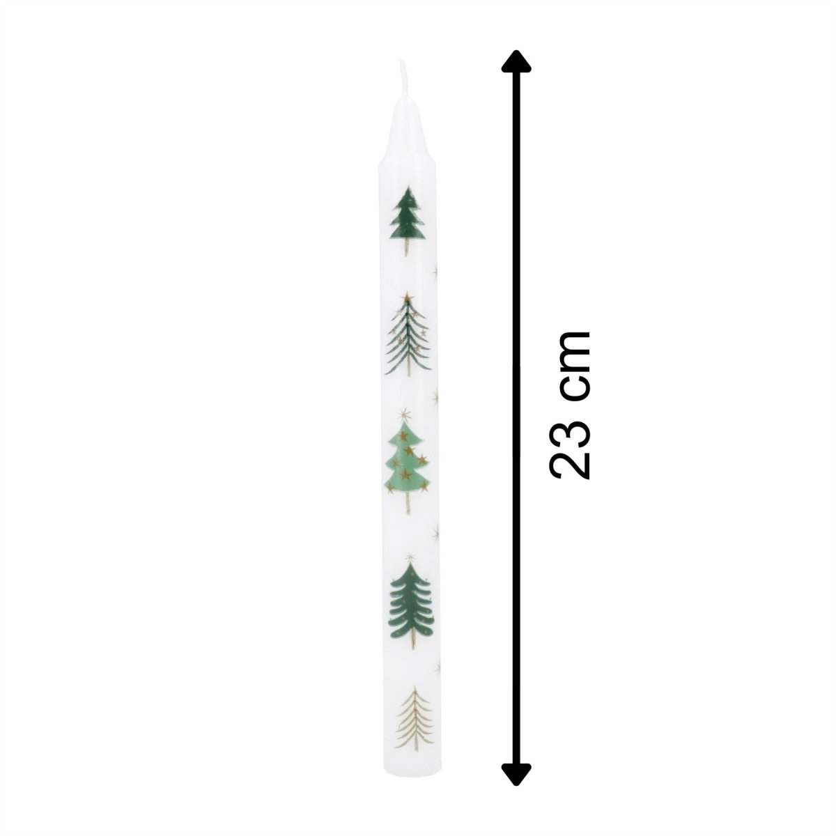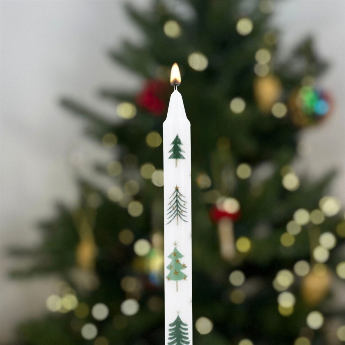 CHRISTMAS CANDLE | Create a welcoming ambience with our Christmas Trees Dinner Candle. This stunning tapered candle features festive Christmas tree and star designs, perfect for adding a delightful touch to your dining experience