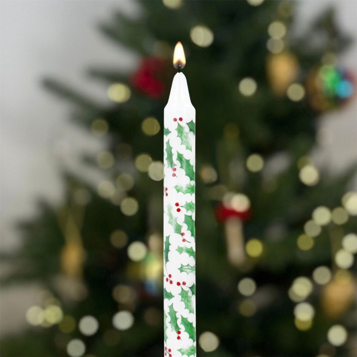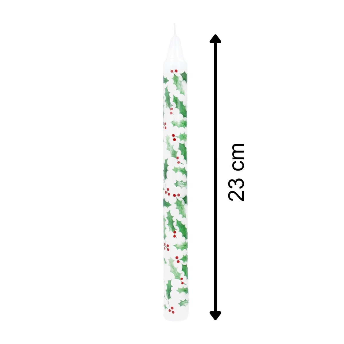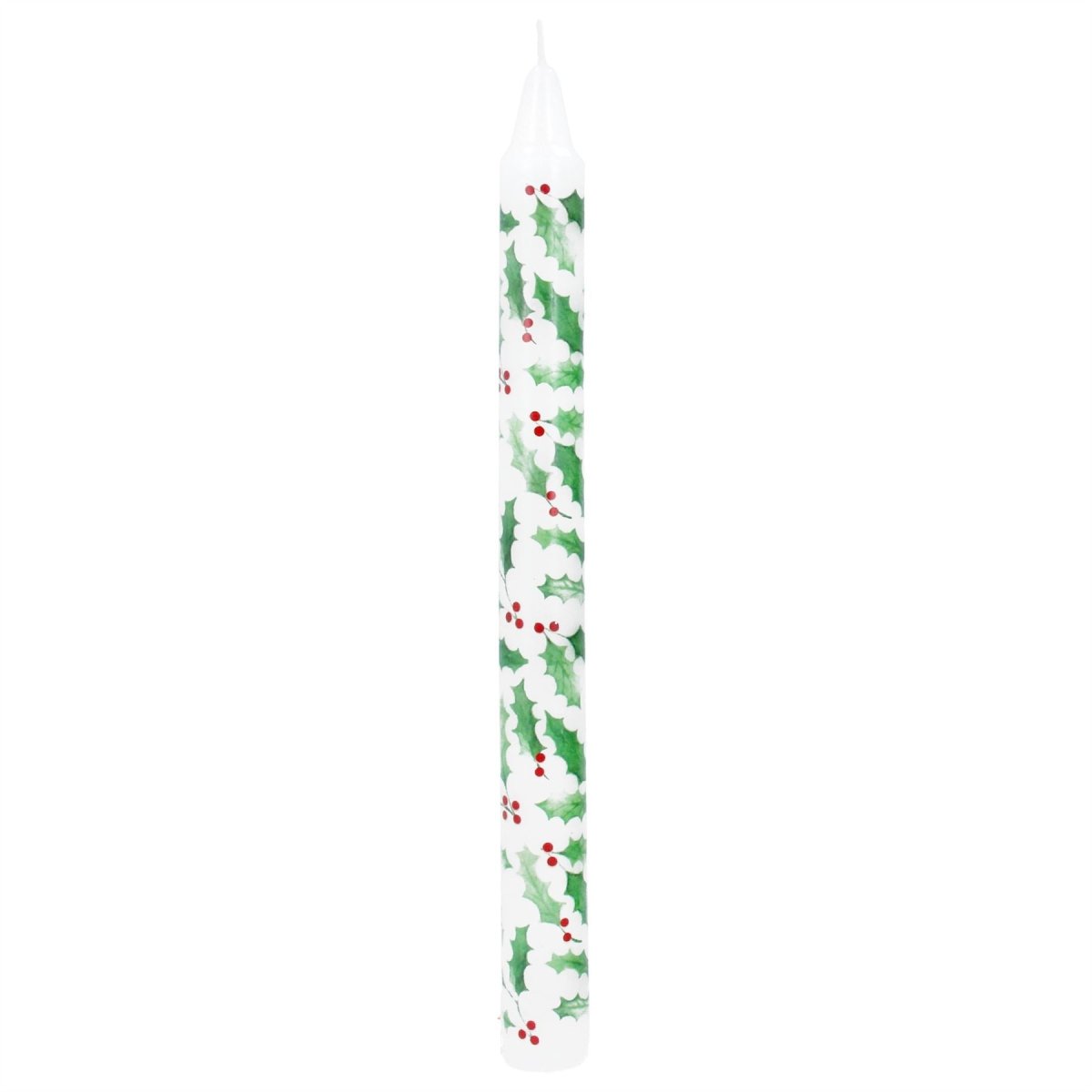 CHRISTMAS CANDLE | Create a welcoming ambience with our Holly Red Berries Dinner Candle. This stunning tapered candle features festive holly designs, perfect for adding a delightful touch to your dining experience