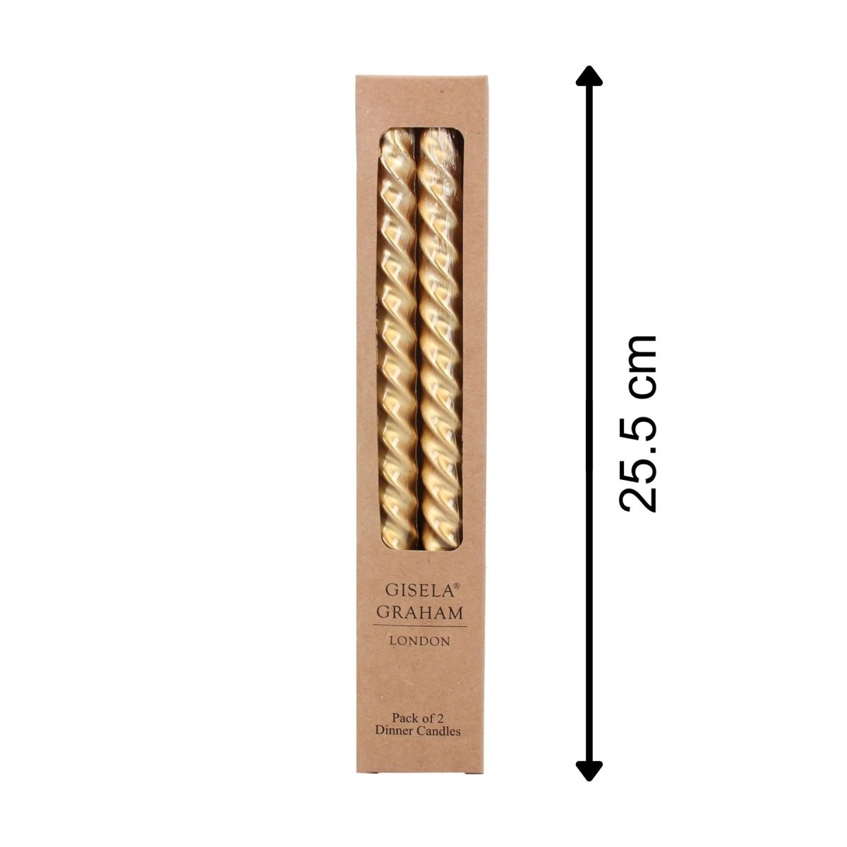 Add a touch of style to your Christmas table with this boxed pair of Gisela Graham Metallic Gold Dinner Candles. Featuring an elegant twist design and made from high-quality paraffin wax, these 25cm candles fit standard holders perfectly. Ideal for festive dinners, family celebrations, or cosy nights in, their unscented nature ensures they suit any setting
