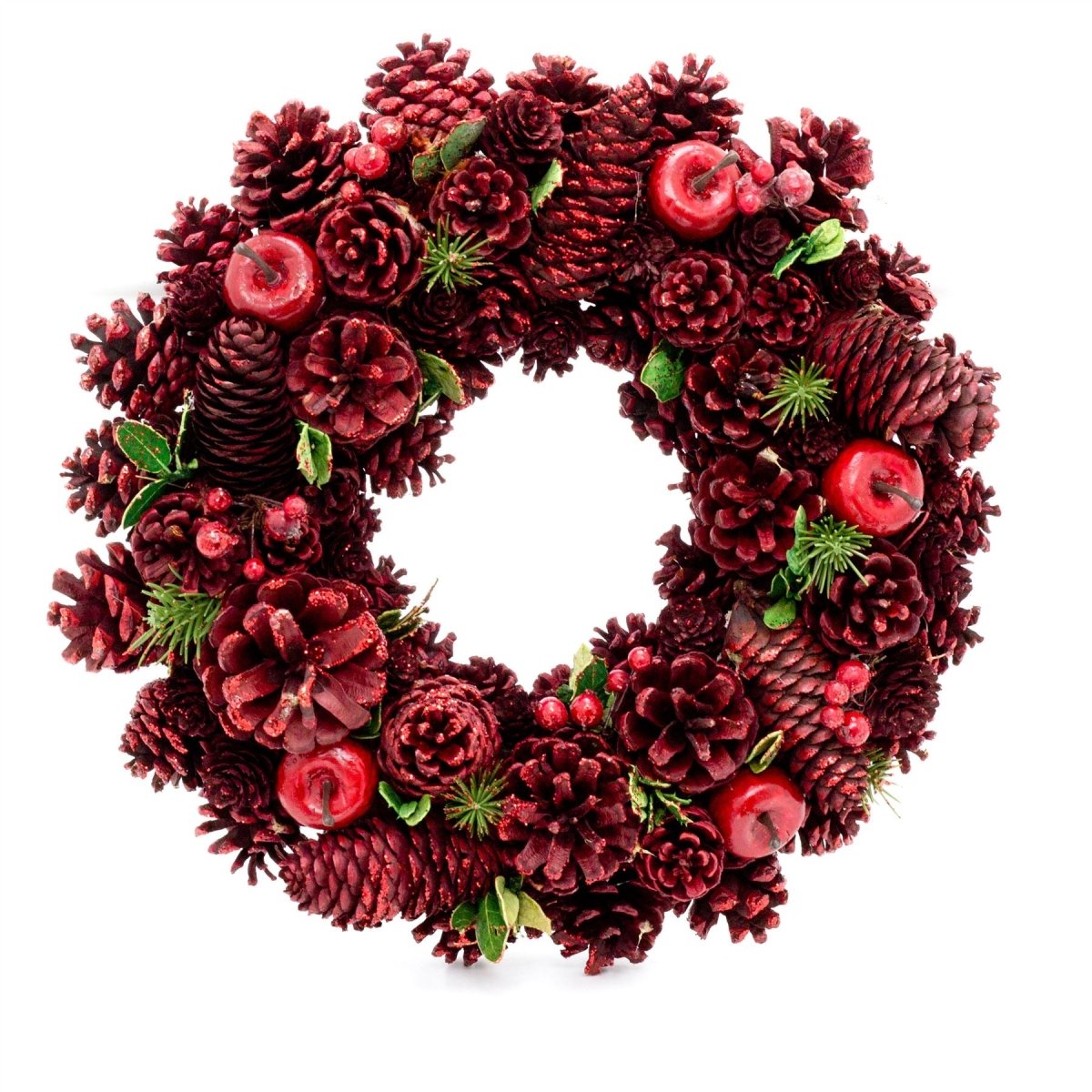 CHRISTMAS WREATH: Have the most stylish front door in your street this Christmas! Beautiful natural pinecone wreath with lovely Christmassy glitter details. The pinecones are joined gorgeous artificial red glittery berries, and mini apples nestle in amongst the wreath too