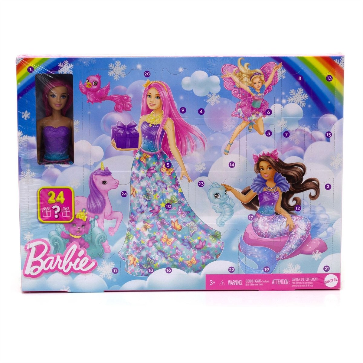 BARBIE ADVENT CALENDAR | Dive into 24 days of festive surprises with the Barbie Advent Calendar, featuring a charming Barbie doll with long, pink fantasy hair to start the festive countdown