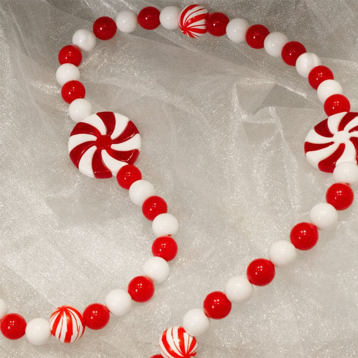 CANDY CANE GARLAND | Add a splash of festive spirit to your home this Christmas with our Candy Garland Decoration. This delightful hanging sweetie ornament showcases a whimsical design that beautifully resembles classic candy canes