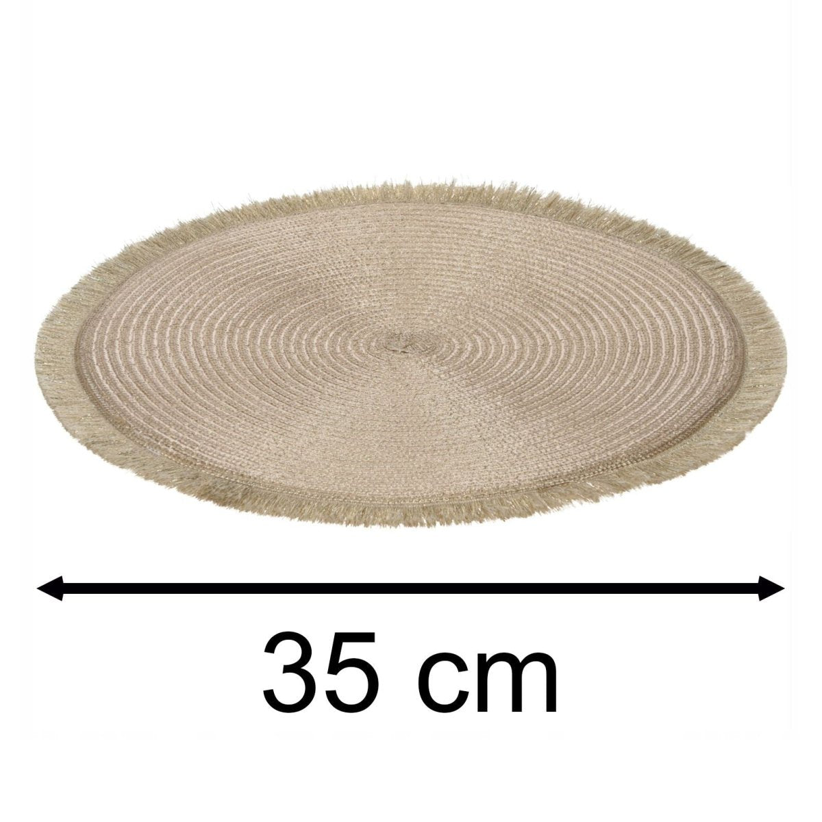 Add a touch of sophistication to your dining experience with our Champagne Gold Placemat. Featuring a beautiful round design with shimmering gold threads, this 35 cm placemat is as practical as it is elegant