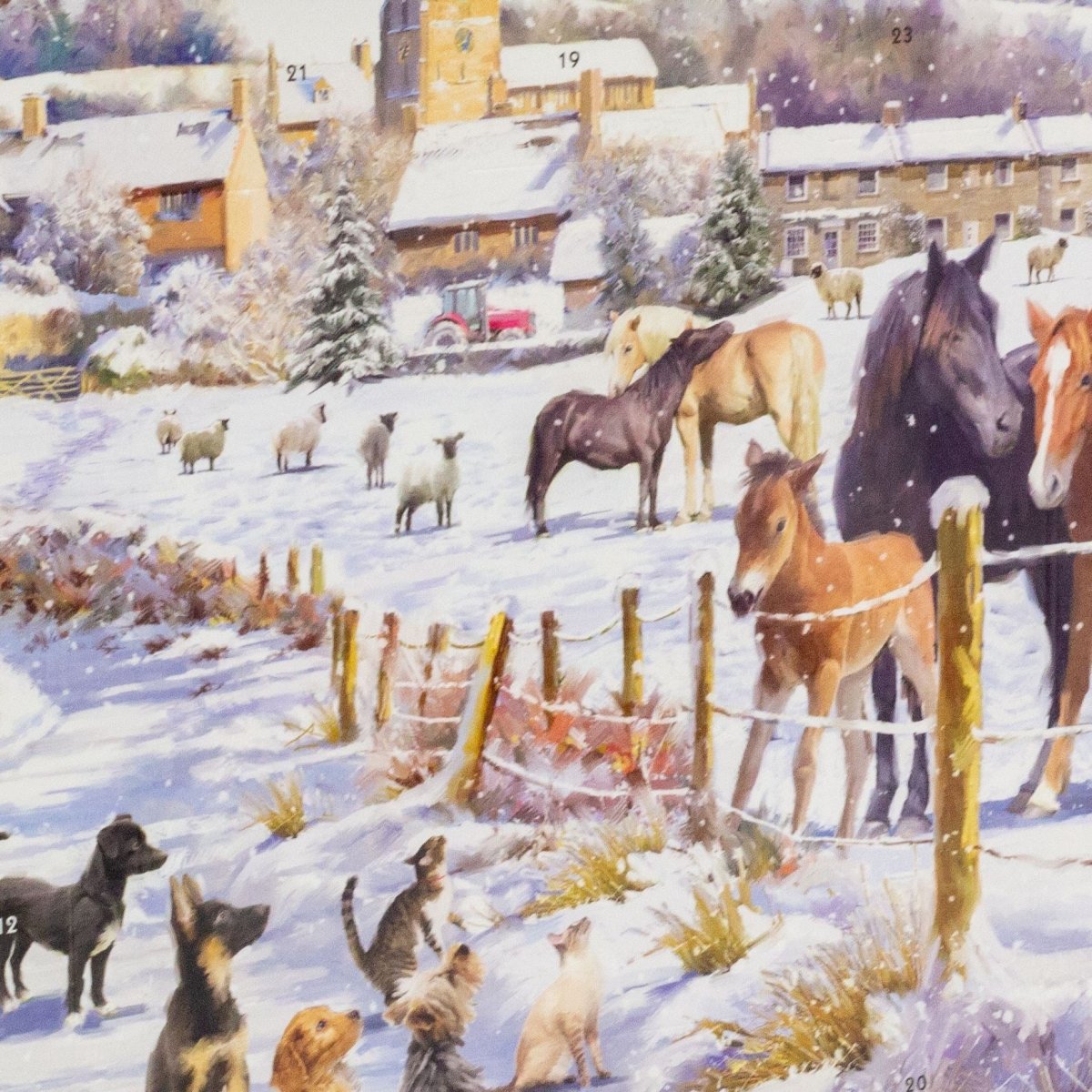 ADVENT CALENDAR | This joyful advent calendar depicts an appealing wintry village scene, with 24 doors for you and your loved ones to enjoy during the countdown to Christmas day
