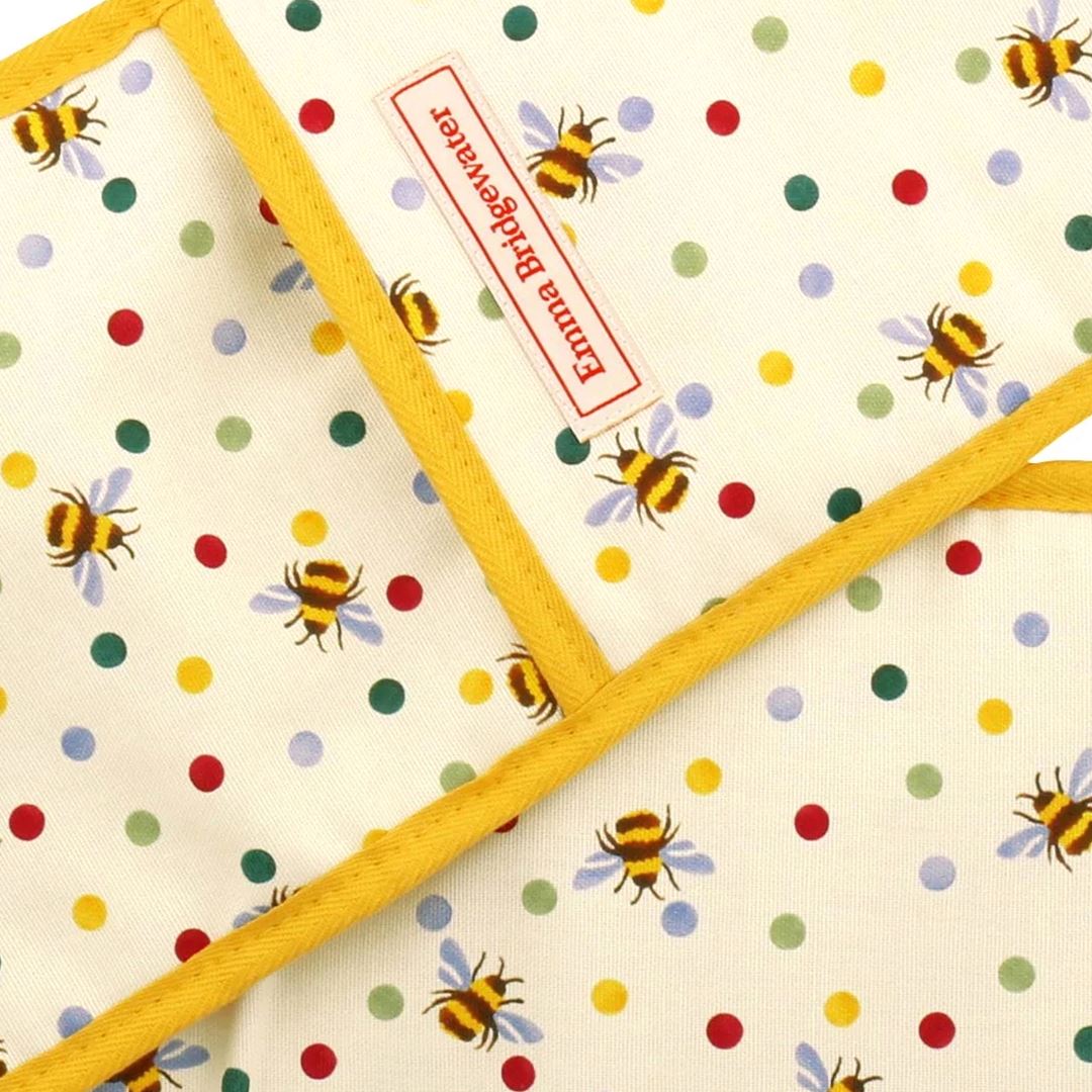 BEE OVEN GLOVES | The oven glove features a cheerful polka dot pattern in multicolour with delightful, buzzing bees interspersed throughout, charming, and practical this Emma Bridgewater double oven glove makes a fabulous addition to any kitchen