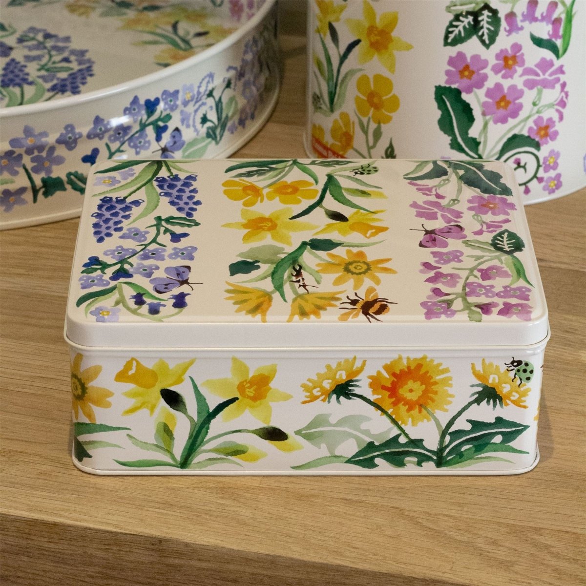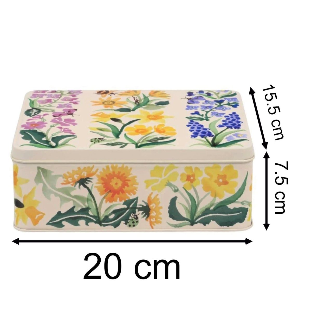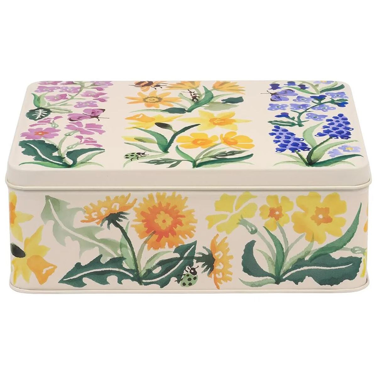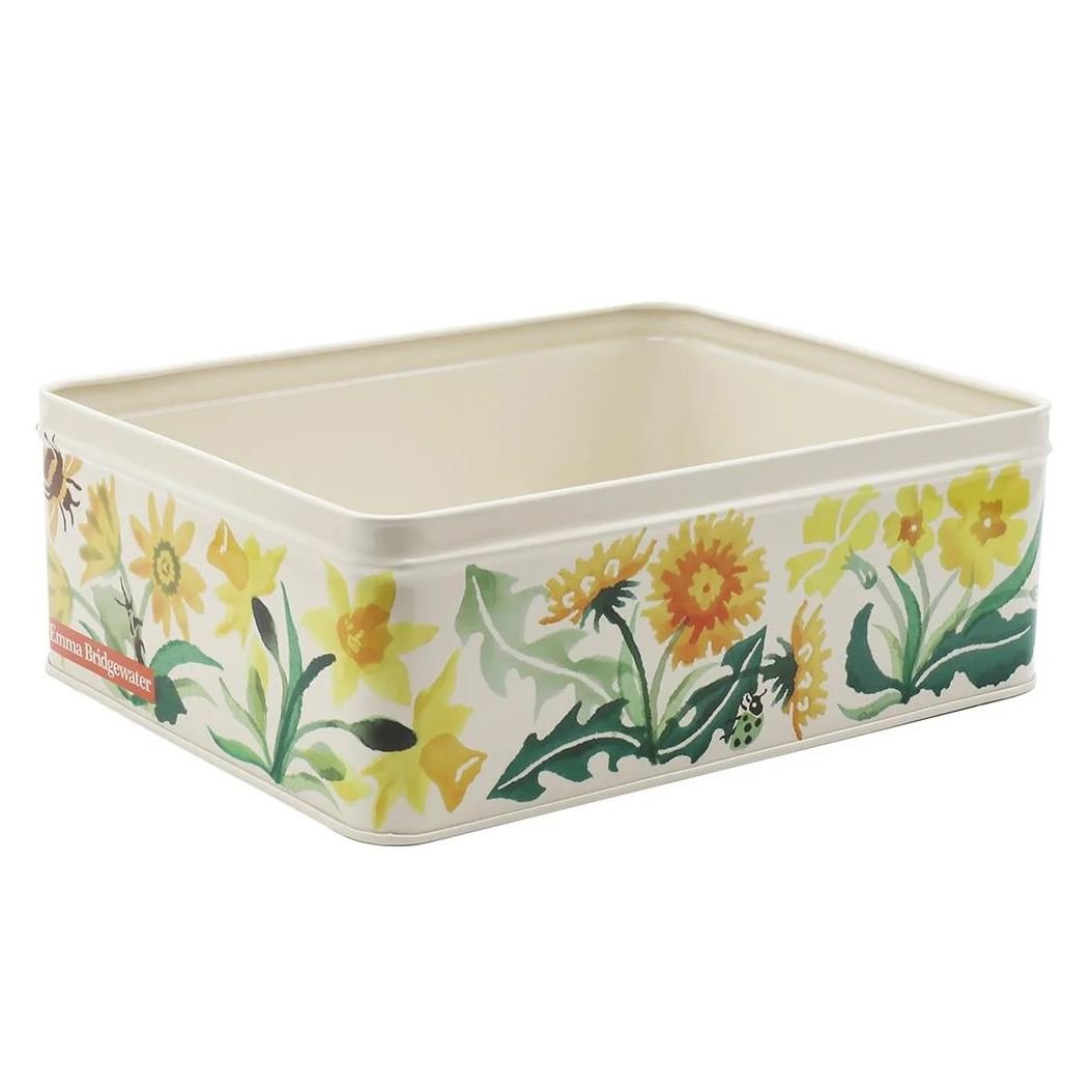 EMMA BRIDGEWATER TIN | Bring a dash of floral sophistication to your home with the Emma Bridgewater Wild Flowers Deep Rectangular Tin. Whether used for practical storage or displayed as a decorative accent, this tin is sure to enchant with its timeless appeal and versatile functionality