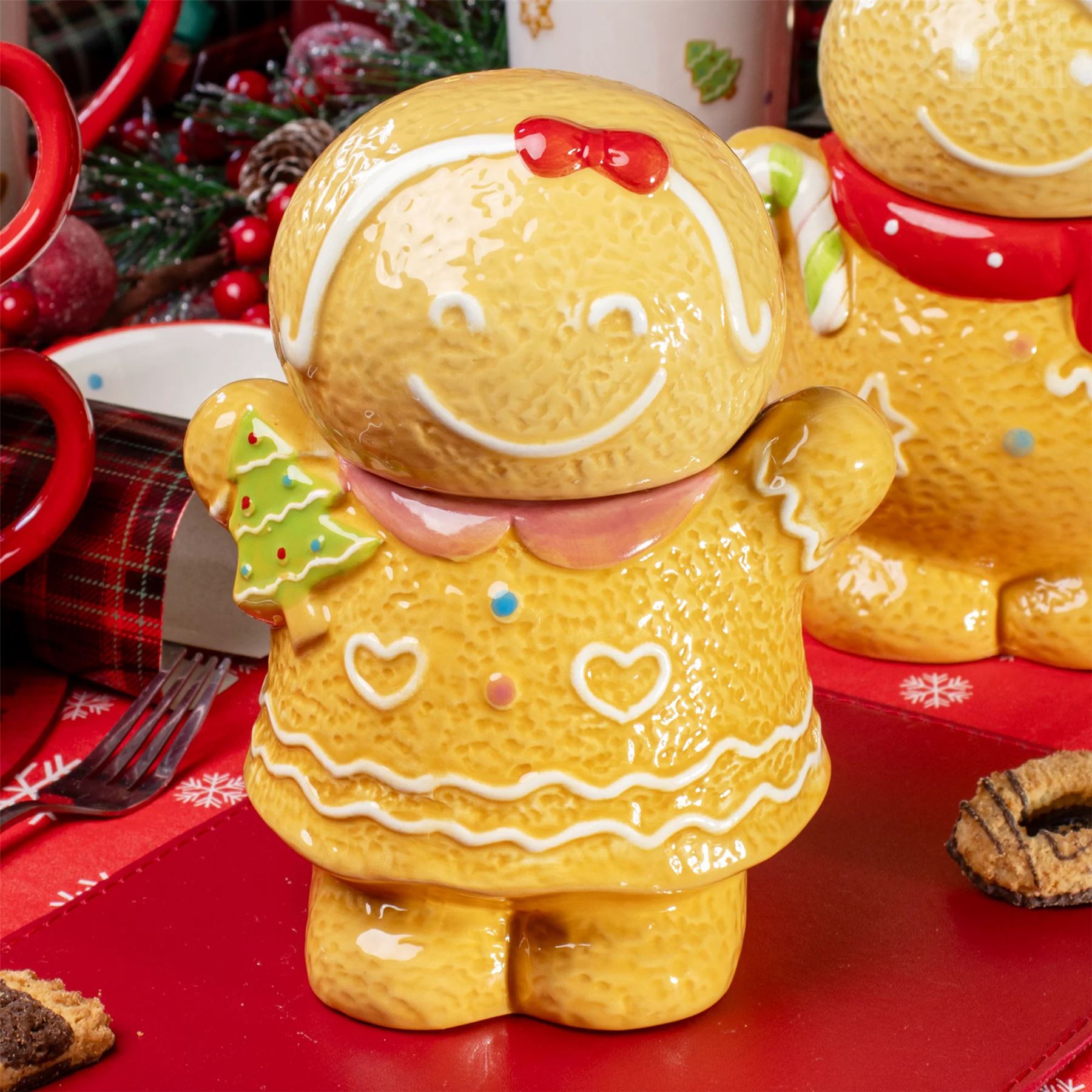 CHRISTMAS DECOR | Made from high-quality ceramic, this gingerbread girl jar is sturdy and built to last, ready to spread joy year after year without losing her festive flair