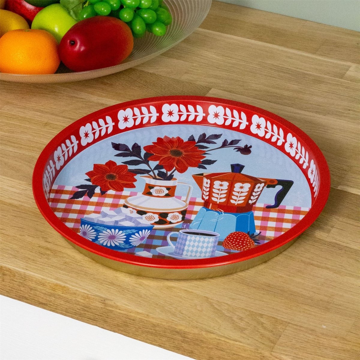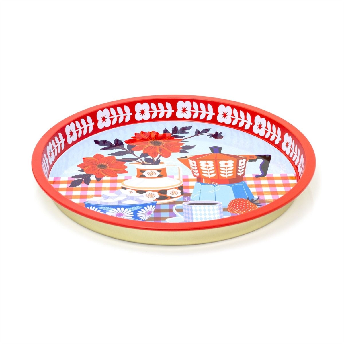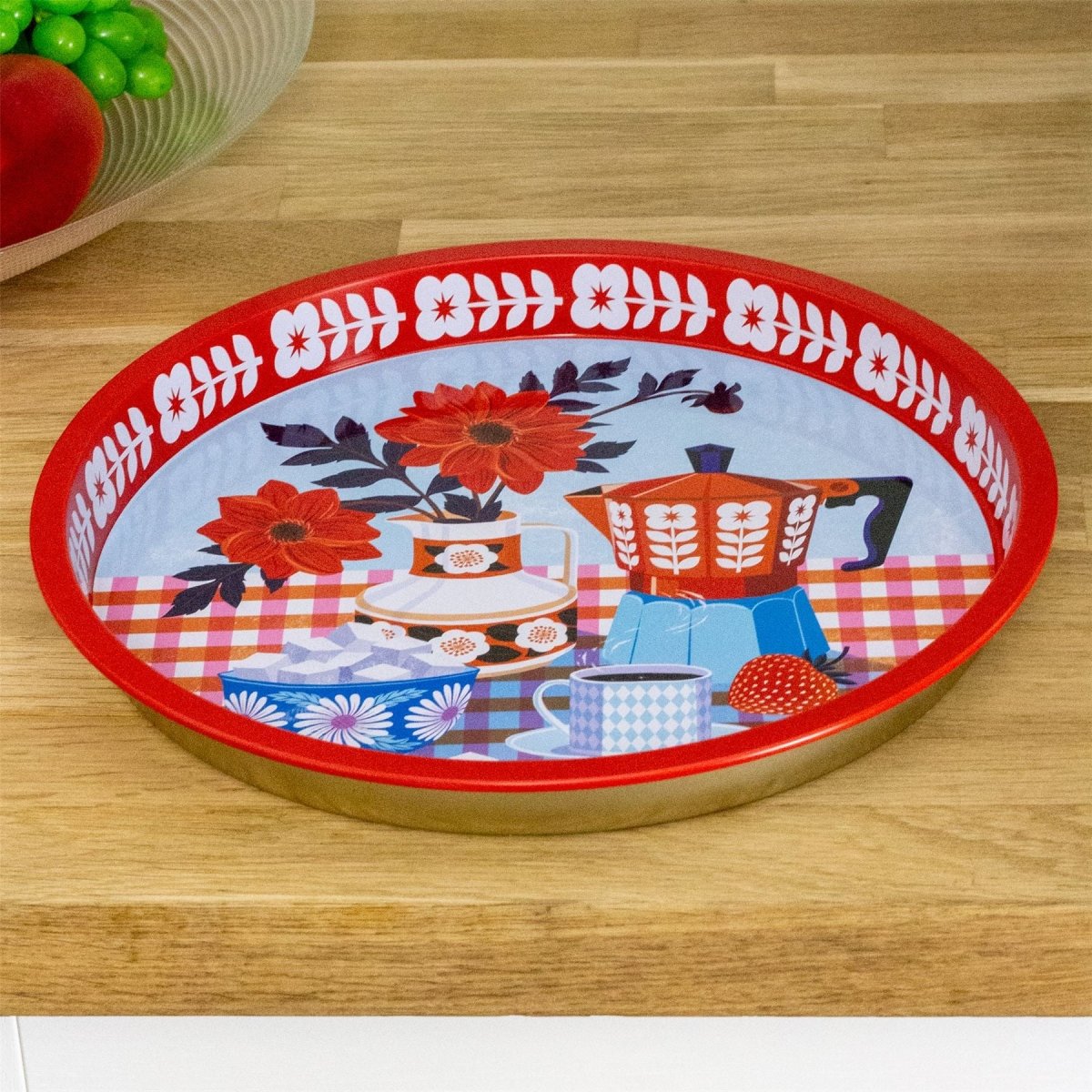 ROUND TIN TRAY | Crafted with premium materials, the Printer Johnson tray exudes quality and exclusivity, adding a touch of sophistication to any kitchen setting