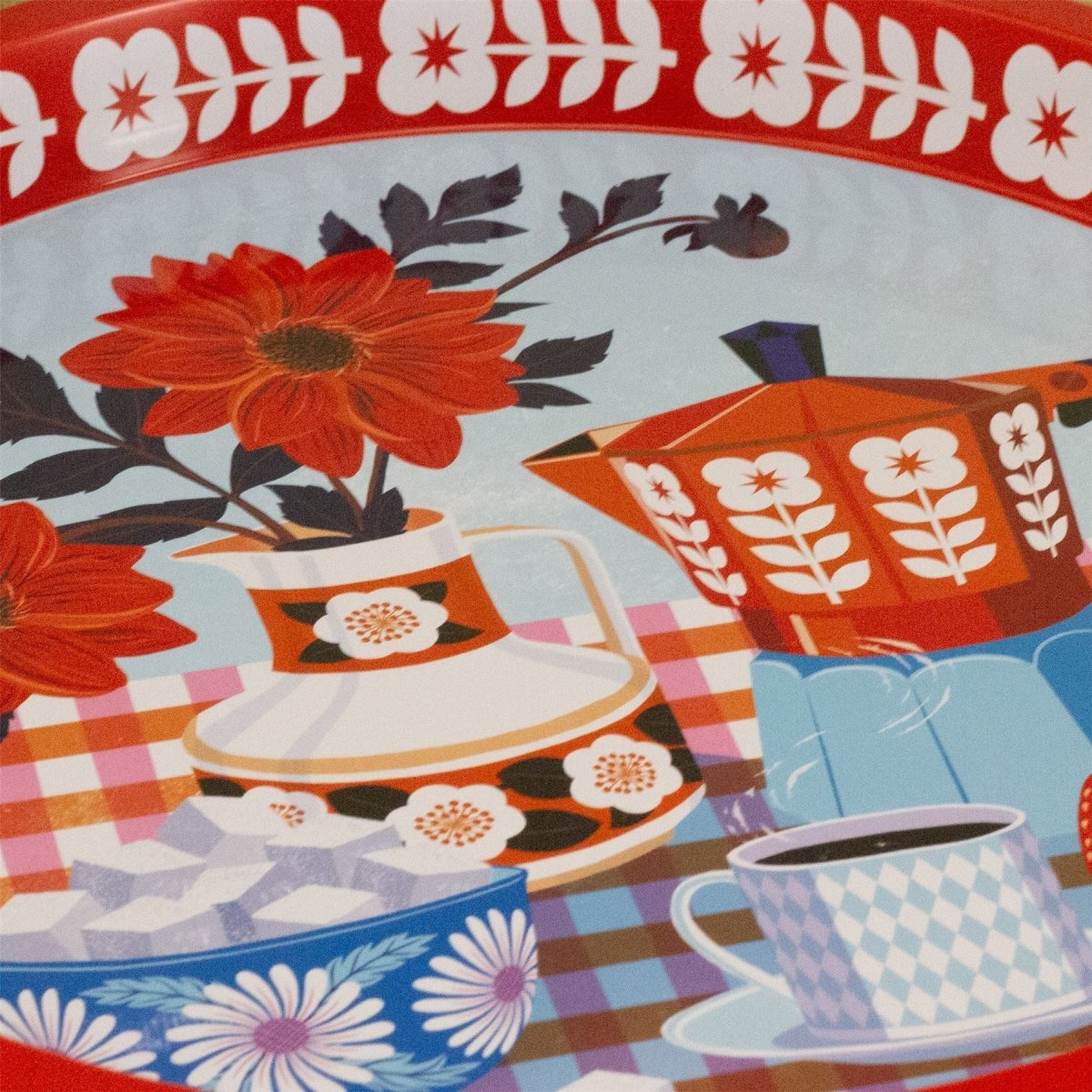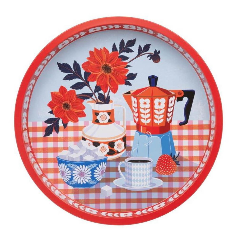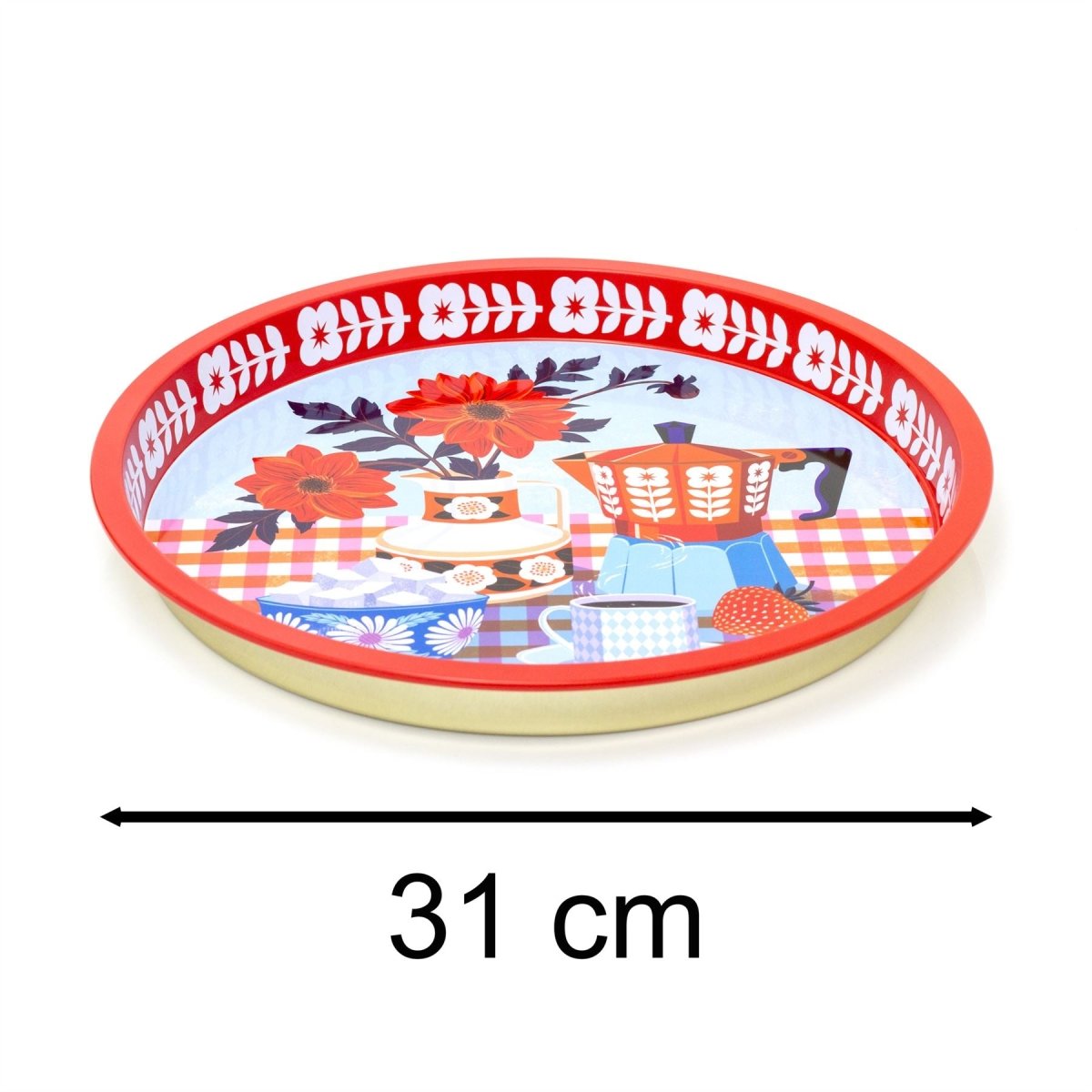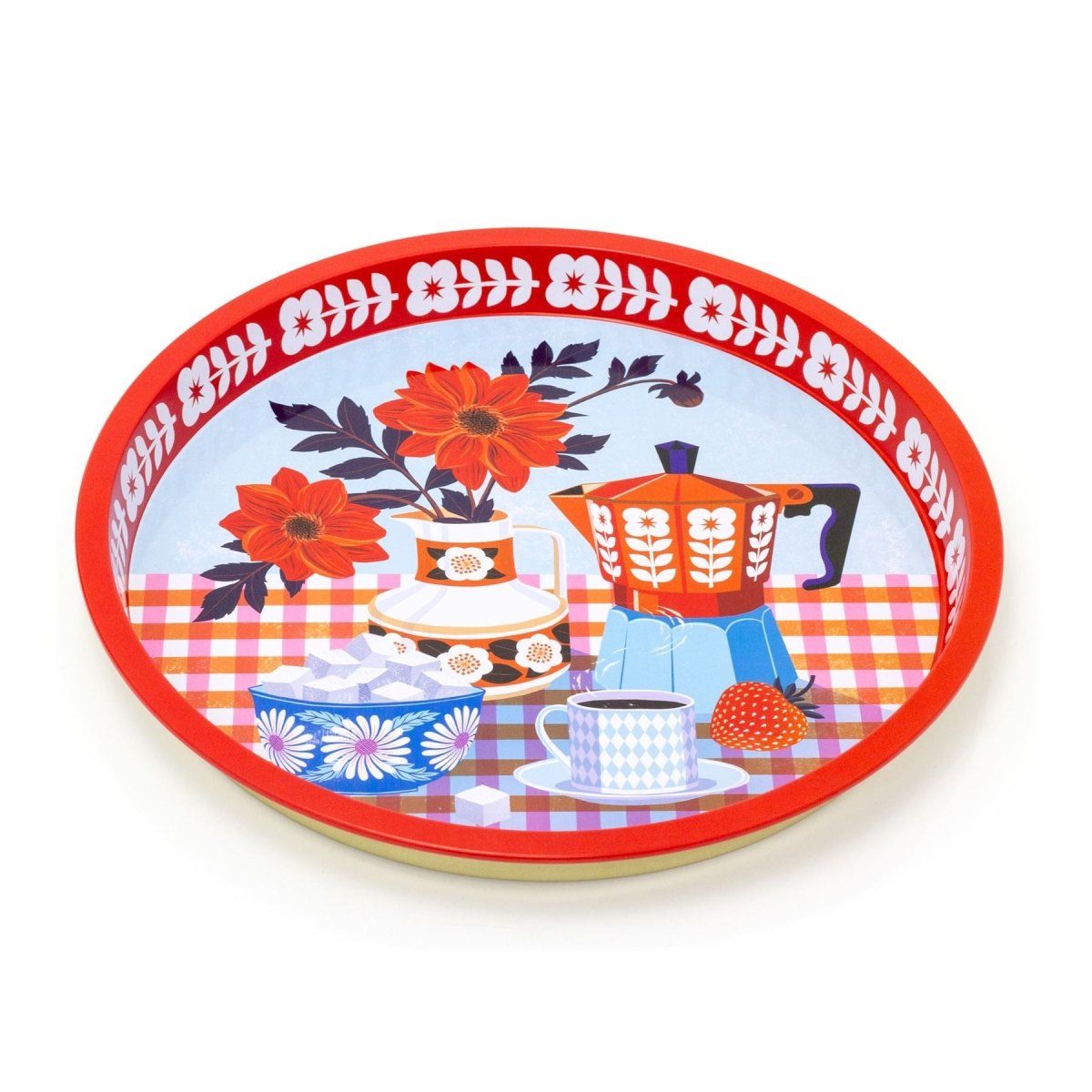ROUND TIN TRAY | Crafted with premium materials, the Printer Johnson tray exudes quality and exclusivity, adding a touch of sophistication to any kitchen setting