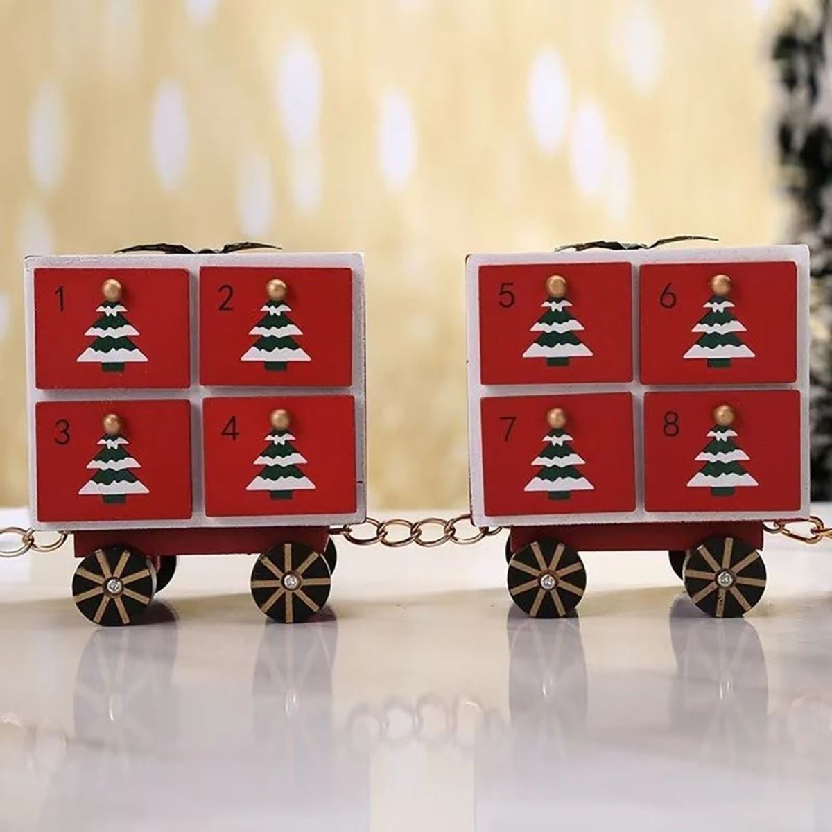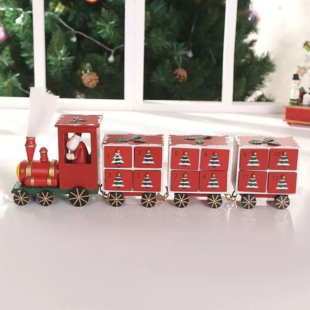 CHRISTMAS TRAIN ADVENT CALENDAR | Delight your little ones with a cheerful red wooden train featuring Santa and festive decorations for a magical countdown