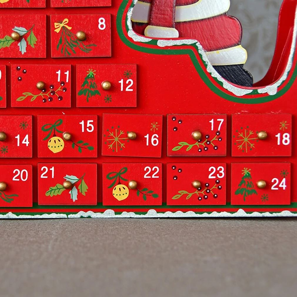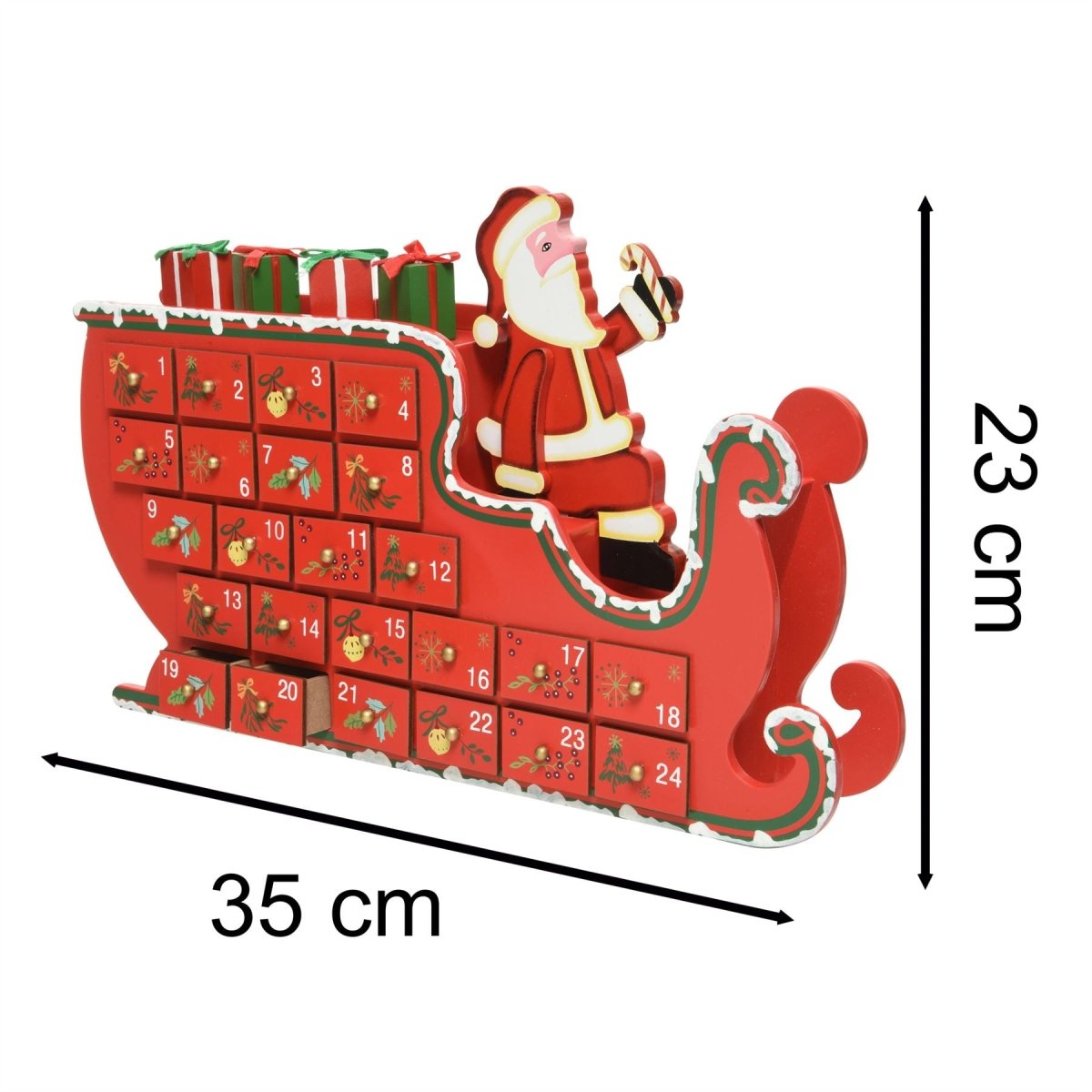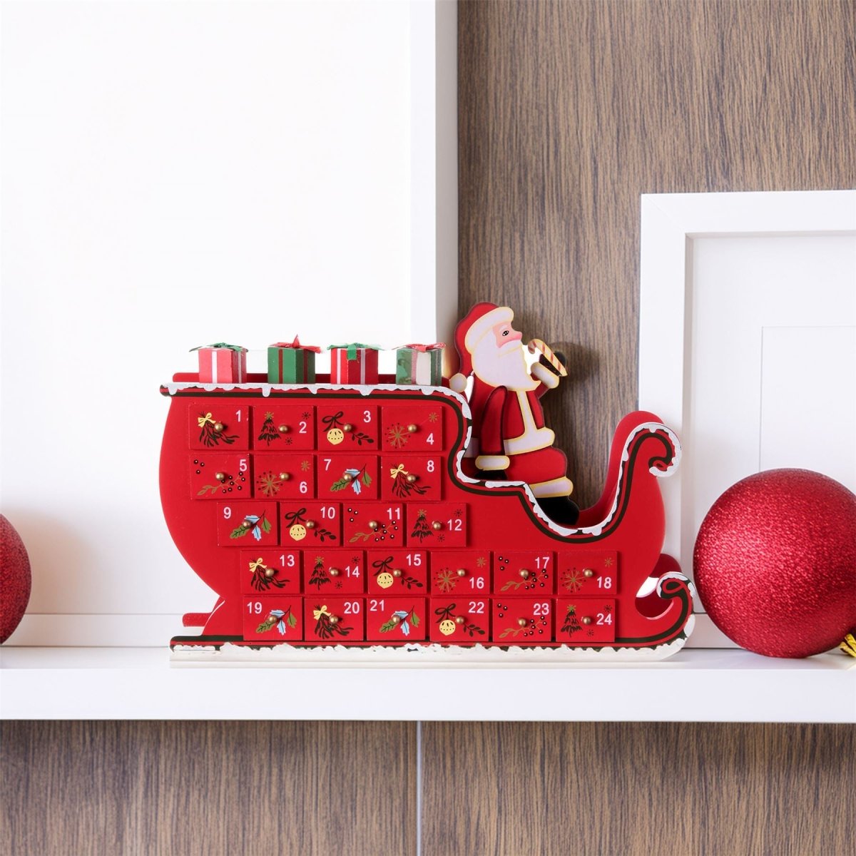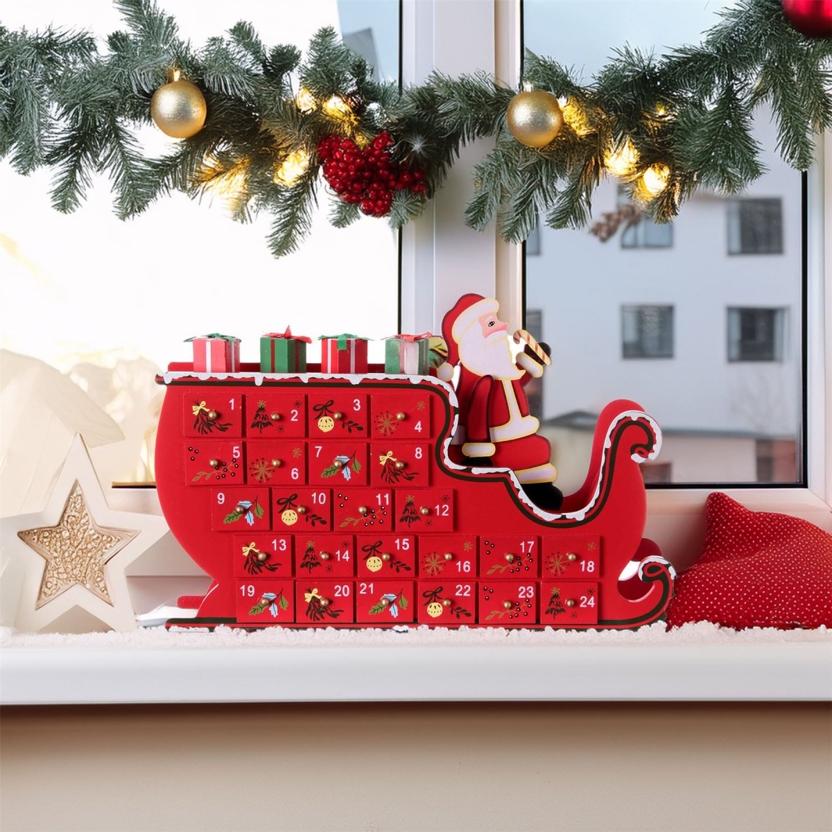 CHRISTMAS ADVENT CALENDAR | This Santa Sleigh Advent Calendar is beautifully crafted in vibrant red and green, featuring a delightful Santa at the helm. Its enchanting design makes it a joyful addition to your festive decor