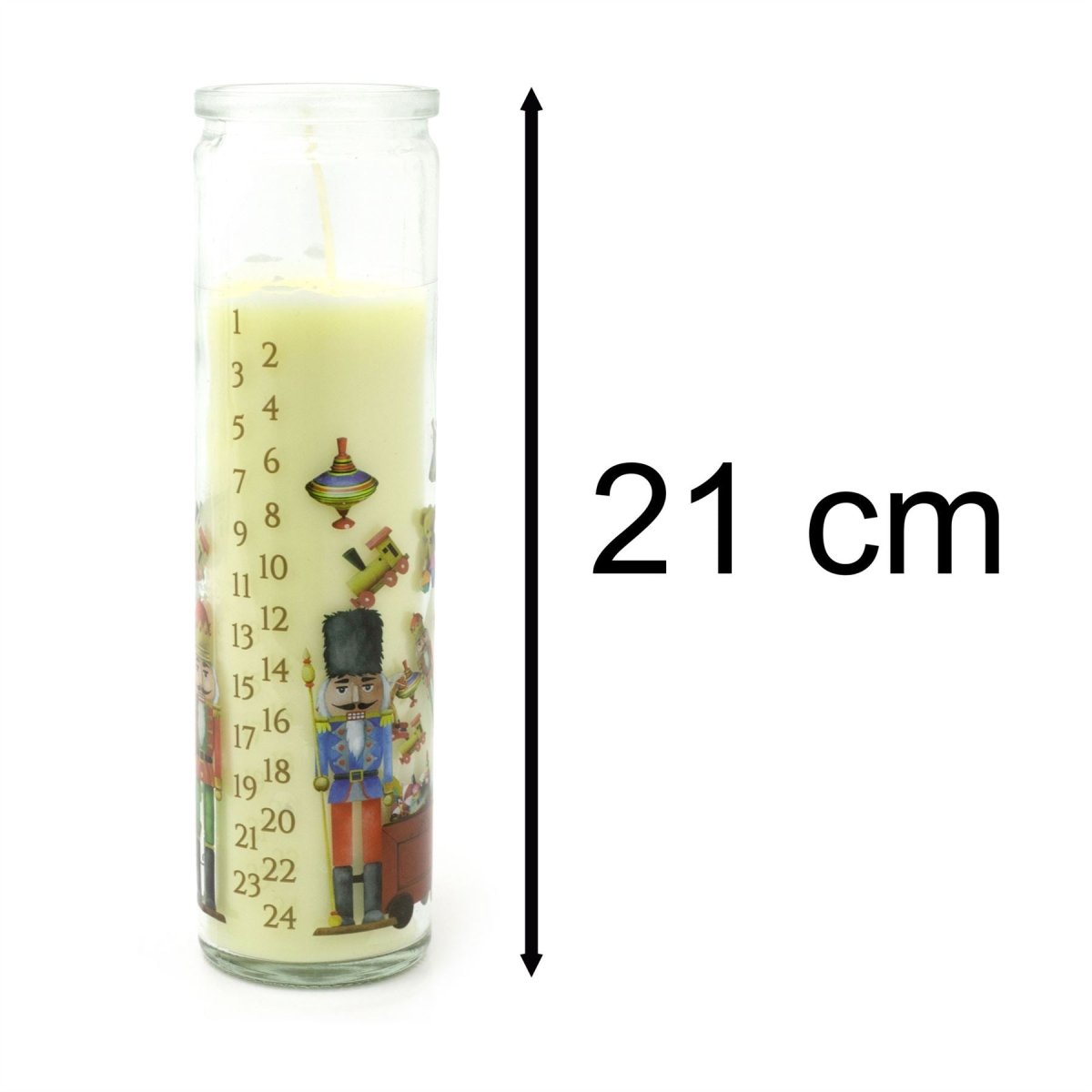 CHRISTMAS ADVENT CANDLE | Embrace the magic of Christmas with our Santa's Workshop Advent Candle. Presented in a charming glass jar, this pillar candle is numbered from 1 to 24, perfect for counting down the days to Christmas
