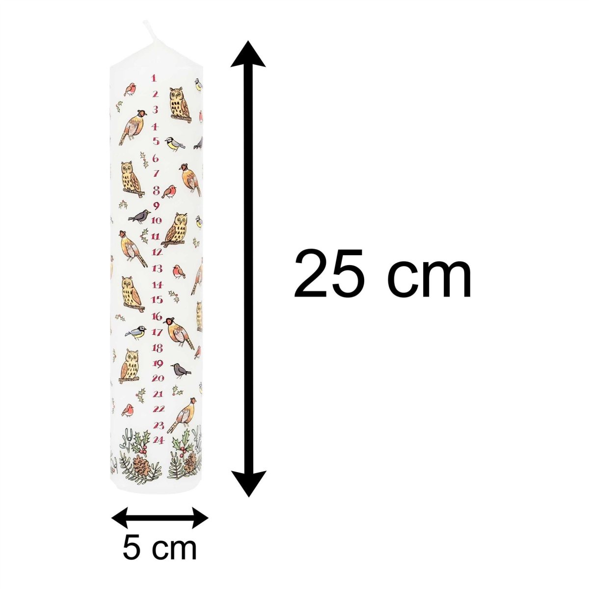 CHRISTMAS CANDLE: Welcome the Festive spirit into your home with the time honoured tradition of lighting an Advent candle each day as a countdown to Christmas Day, these festive Advent calendar candles feature a delightful winter bird design
