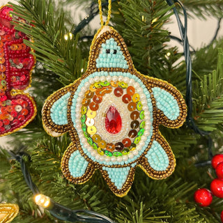 Christmas Tree Beaded Turtle Bauble | Christmas Tree Hanging Ornament - 10cm