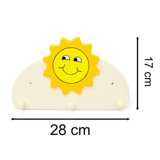 Children's Sunshine Coat Rack | Kids Wall Mounted Wooden Coat Hooks 3 Coat Pegs