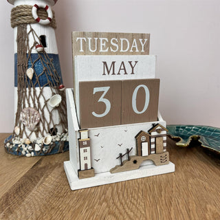 Shabby Chic Coastal Cottages Perpetual Calendar with Seashore Lighthouse Design
