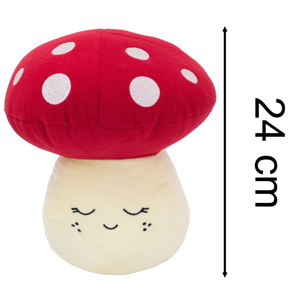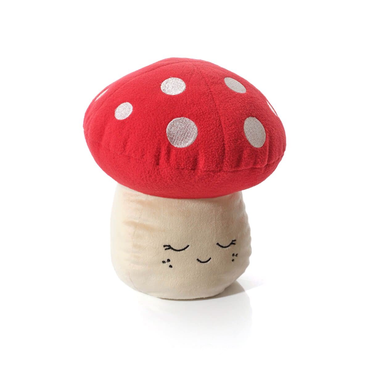 MUSHROOM DOOR STOP | Soft fabric mushroom doorstop with red spotted cap and embroidered smiley face, bringing a playful, cheerful touch to your home