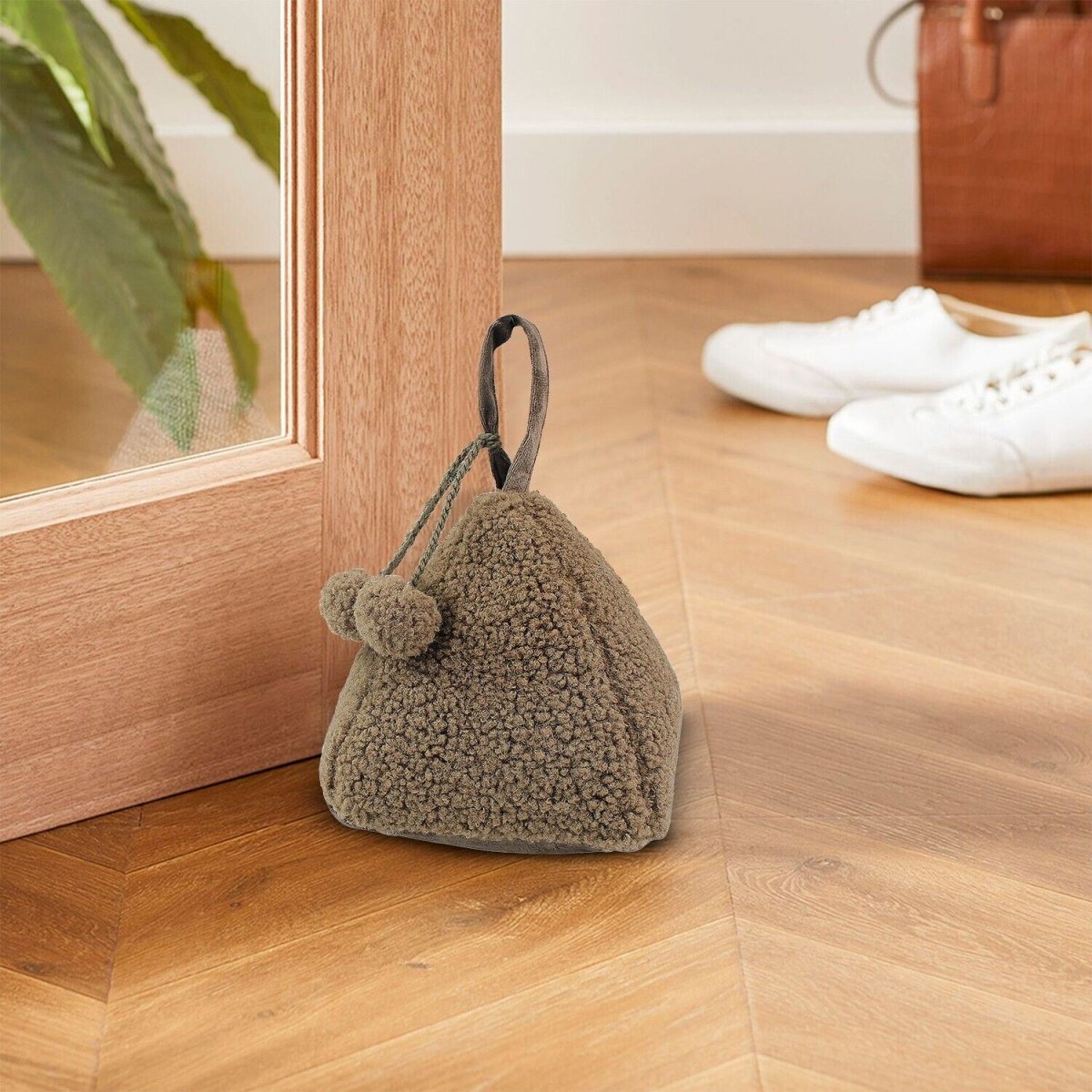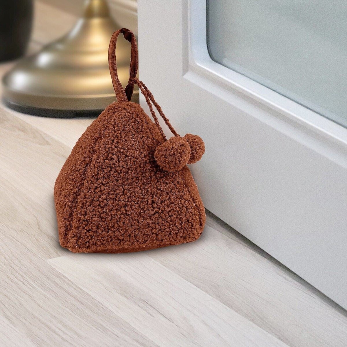 Elevate your home decor with our cosy sherpa fleece pyramid door stopper, the perfect blend of warmth and function for every doorway
