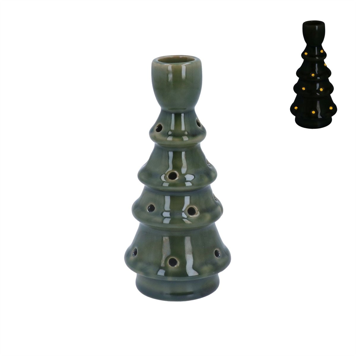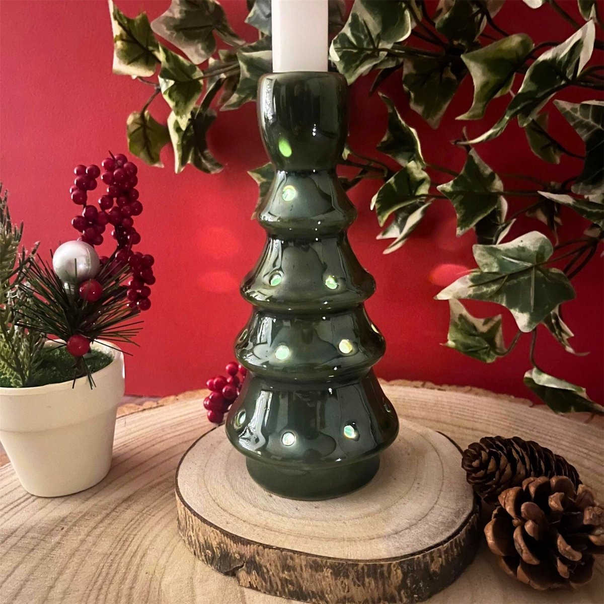 LED Christmas Tree Candlestick | Light-up Green Ceramic Christmas Candle Holder