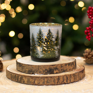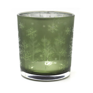 Silhouette Christmas Tealight Holder | Frosted Green Glass Candle Holder - 8cm