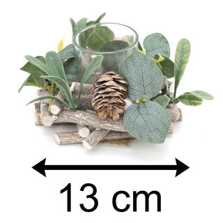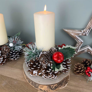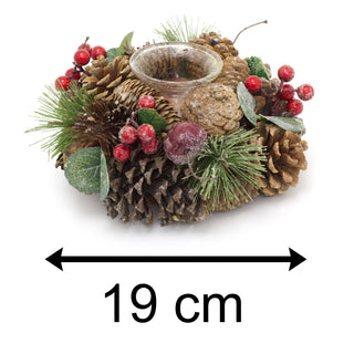 Christmas Tealight Candle Holder | Pinecone & Fruit Wreath Centrepiece - 16cm