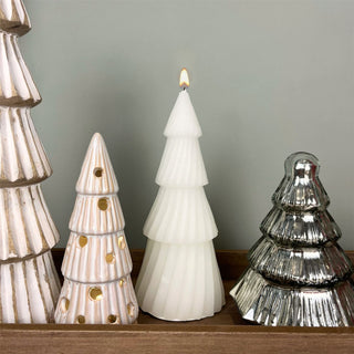 White Christmas Tree Shaped Candle | Unscented Novelty Xmas Tree Candle - 17cm