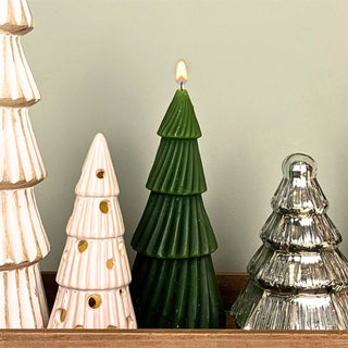 Green Christmas Tree Shaped Candle | Unscented Novelty Xmas Tree Candle - 17cm