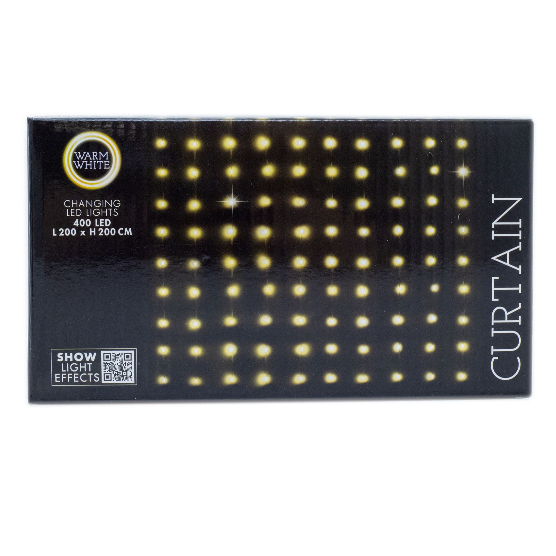 Create a warm, inviting atmosphere with these 400 Warm White LED Curtain Lights. Perfect for the festive season or special occasions, the soft glow suits any space. With a 5x2x2m size these lights offer stunning coverage. Control settings easily with the IR remote