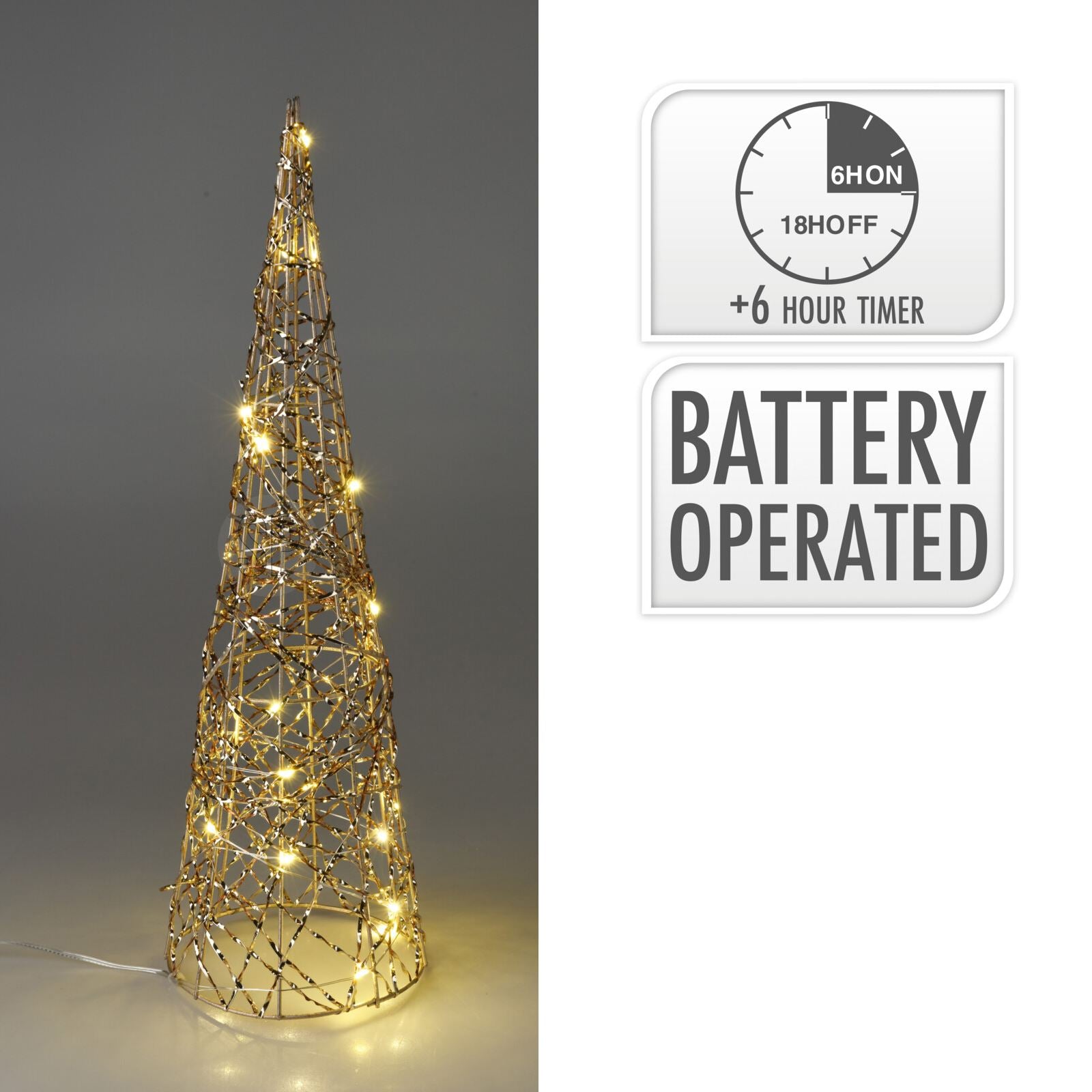 CONE CHRISTMAS TREE | This elegant gold cone tree adds sophistication to your holiday decor, crafted from gold wire and LED lights for a soft, radiant glow