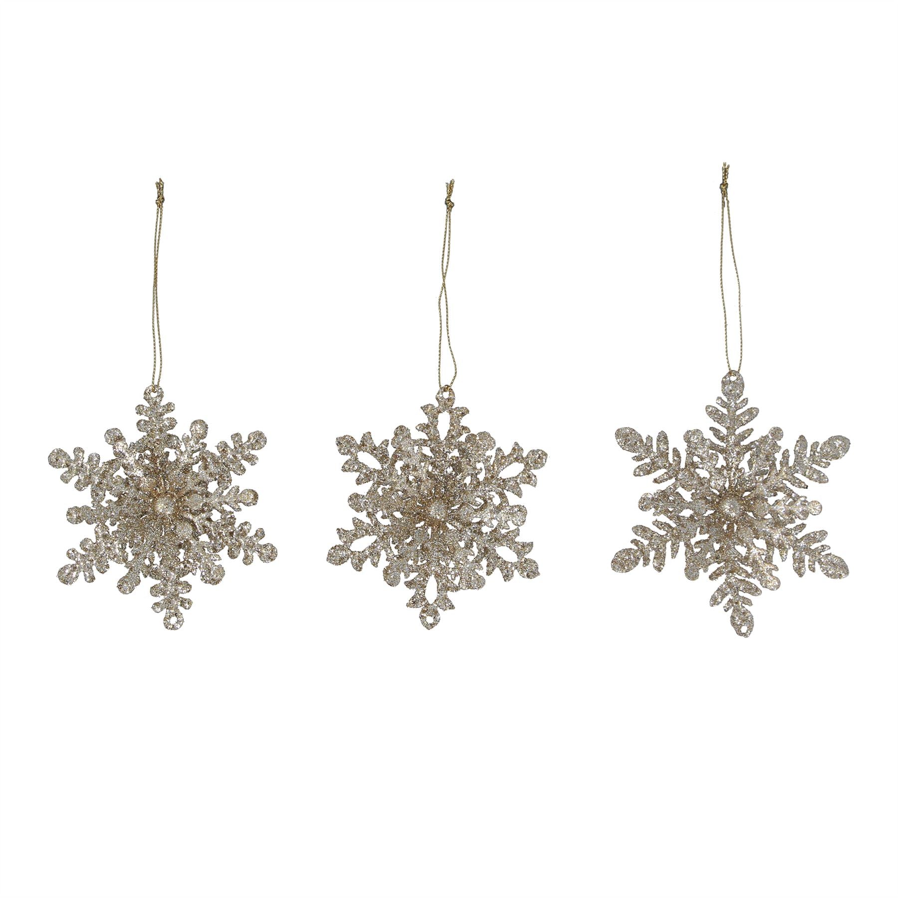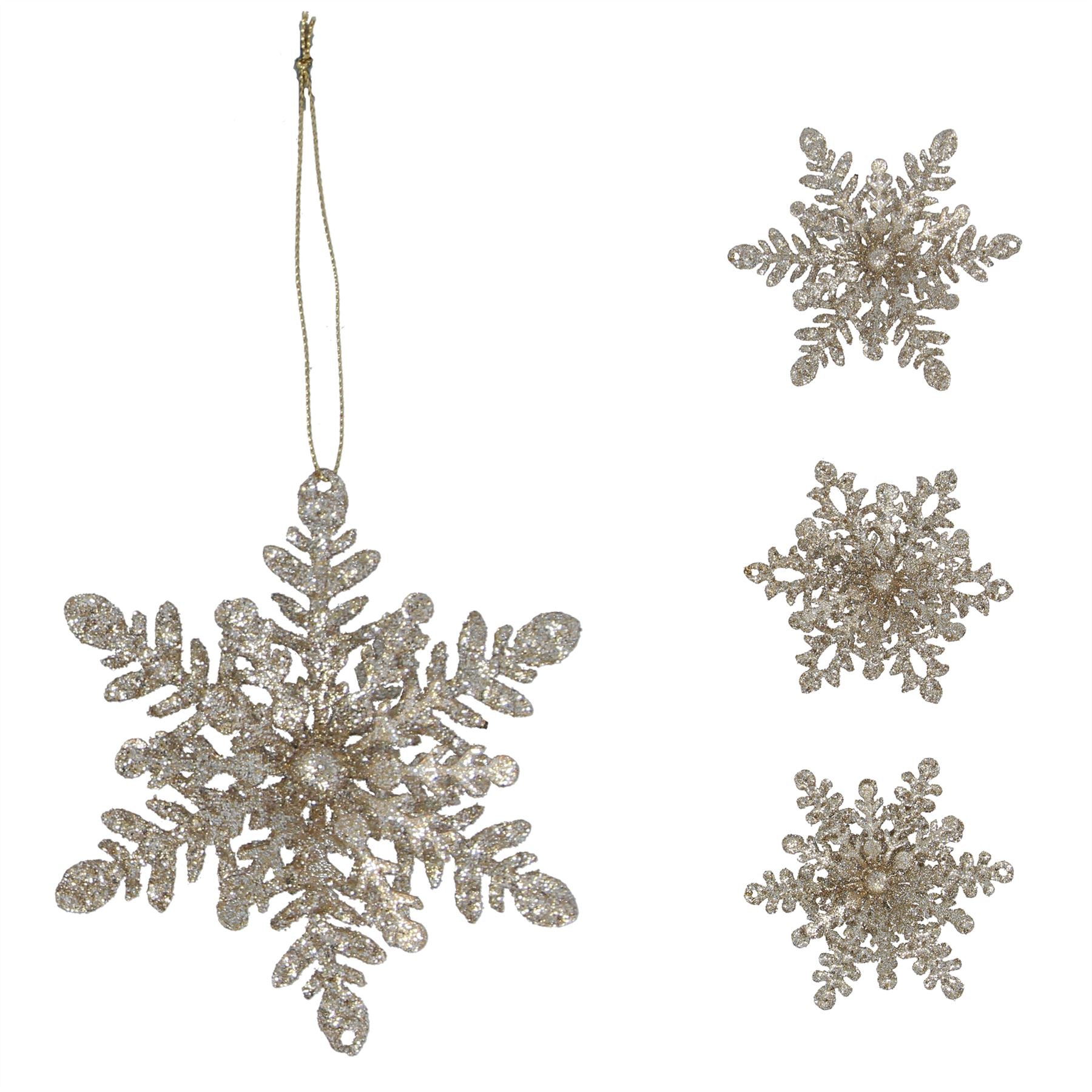 Gold Glitter Tin Snowflake Bauble | Gold Snowflake Christmas Tree Ornament 11cm