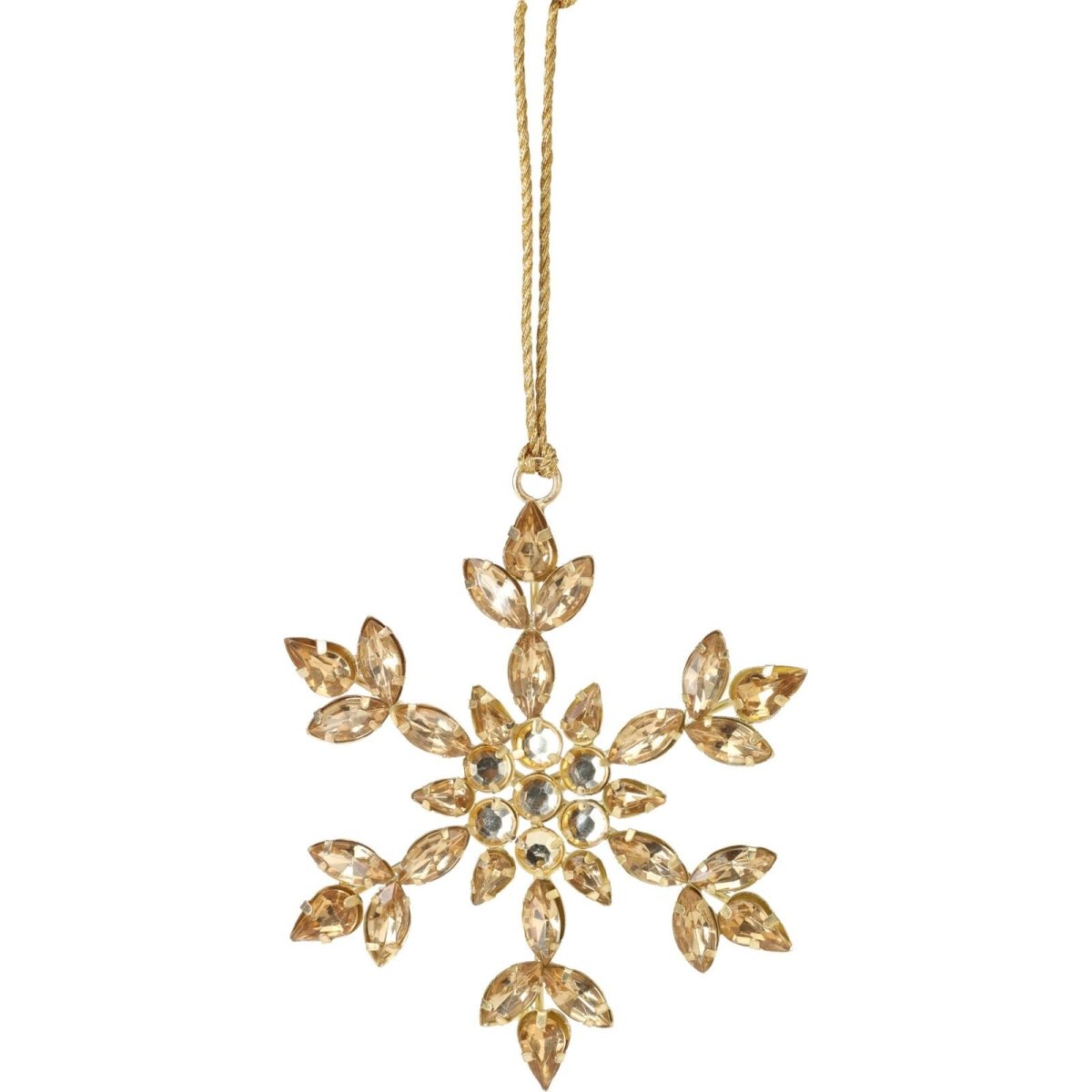 Add sparkle to your Christmas tree with this gold rhinestone snowflake bauble. Crafted from shimmering gems, it reflects festive light beautifully in any setting