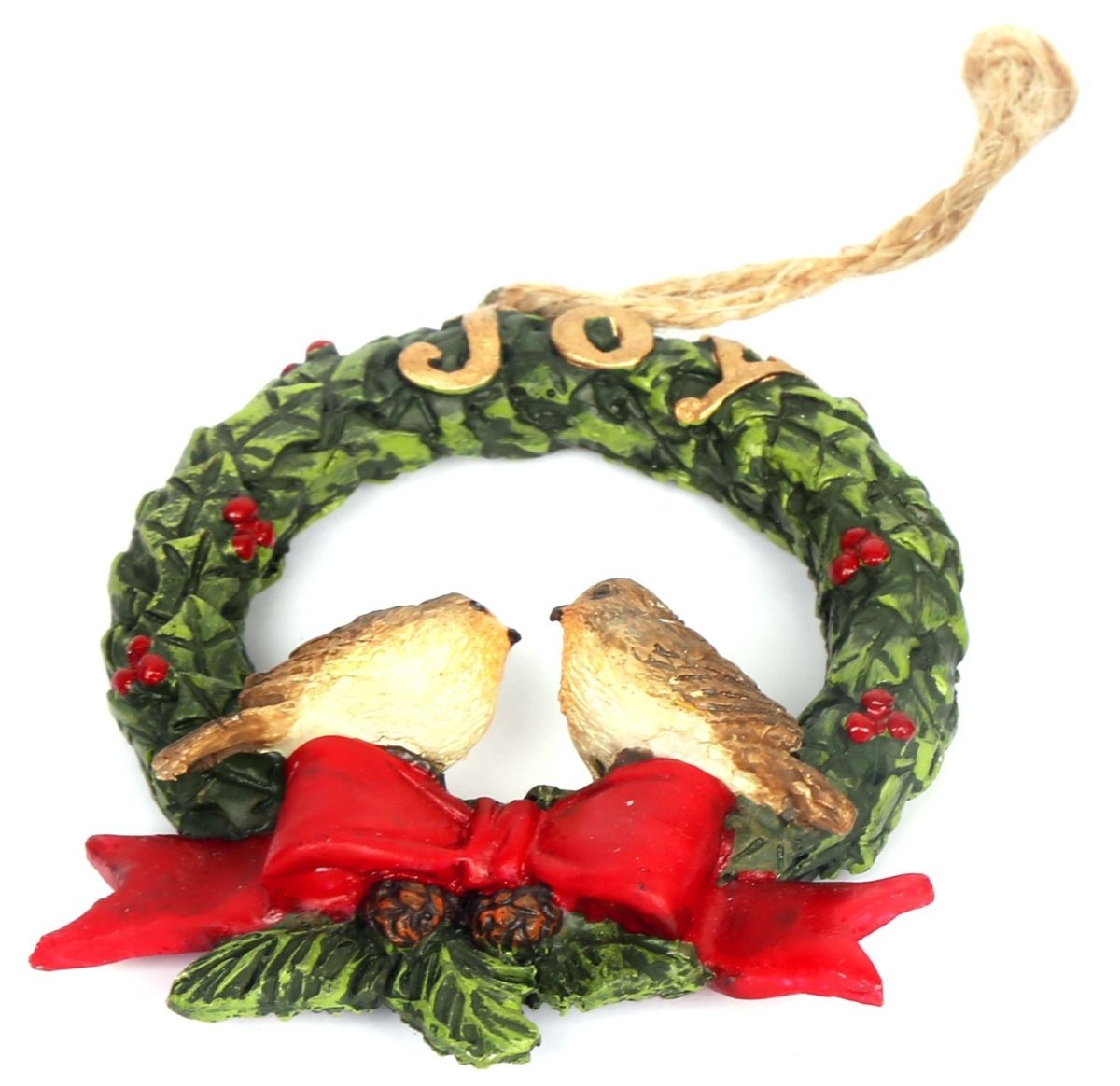 Joy to the world at Christmas! A pretty pair of robins perch on a holly wreath. A beautiful decoration to hang upon your Christmas tree or interior branch display. A lovely traditional style hanging decoration for those that enjoy a more time honoured Christmas celebration.