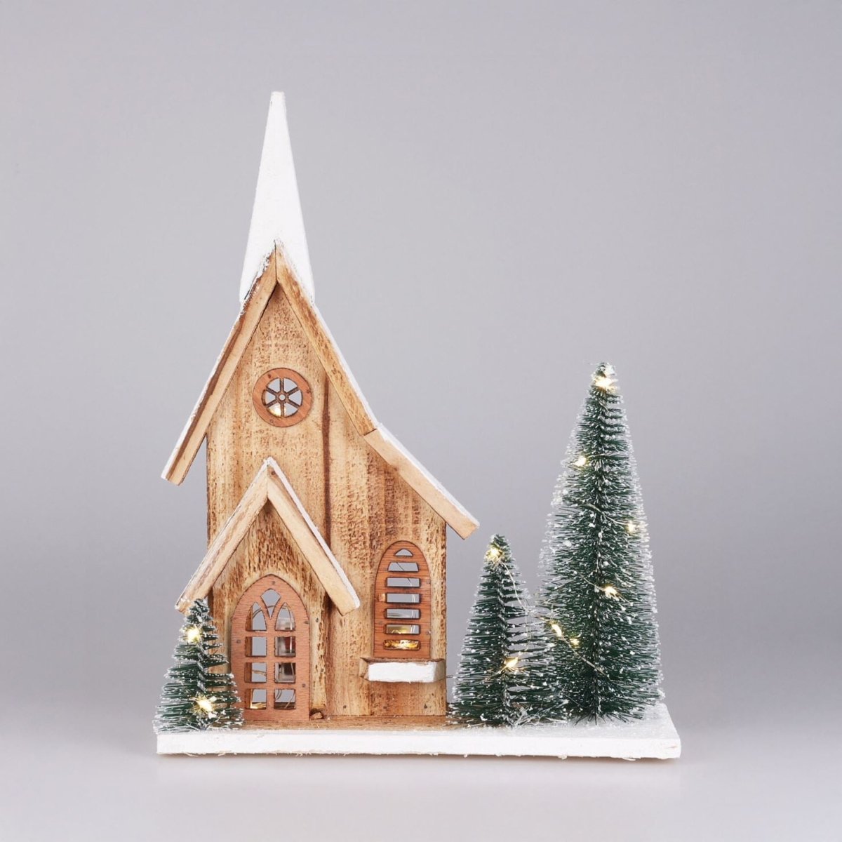 Bring cosy Nordic charm to your festive décor with this beautifully crafted wooden Christmas house. With glowing windows, snow-dusted trees, and a rustic wooden finish, it captures the magic of a winter village