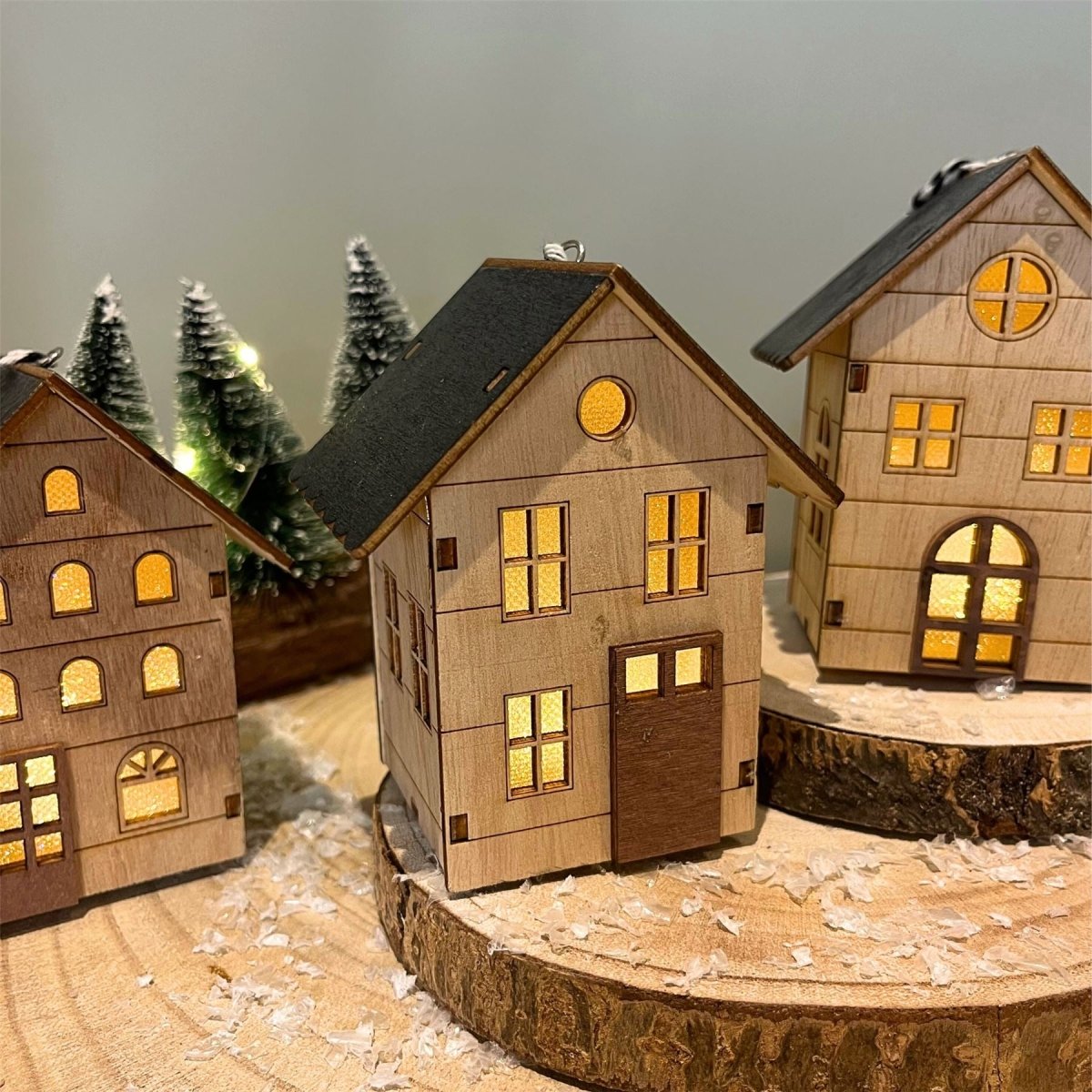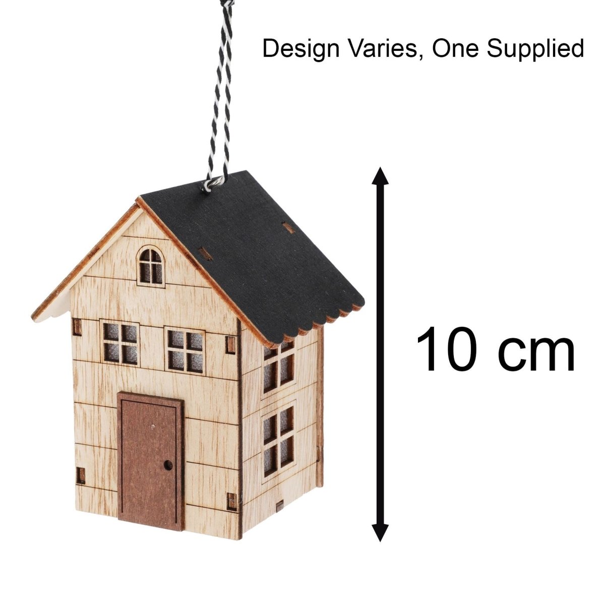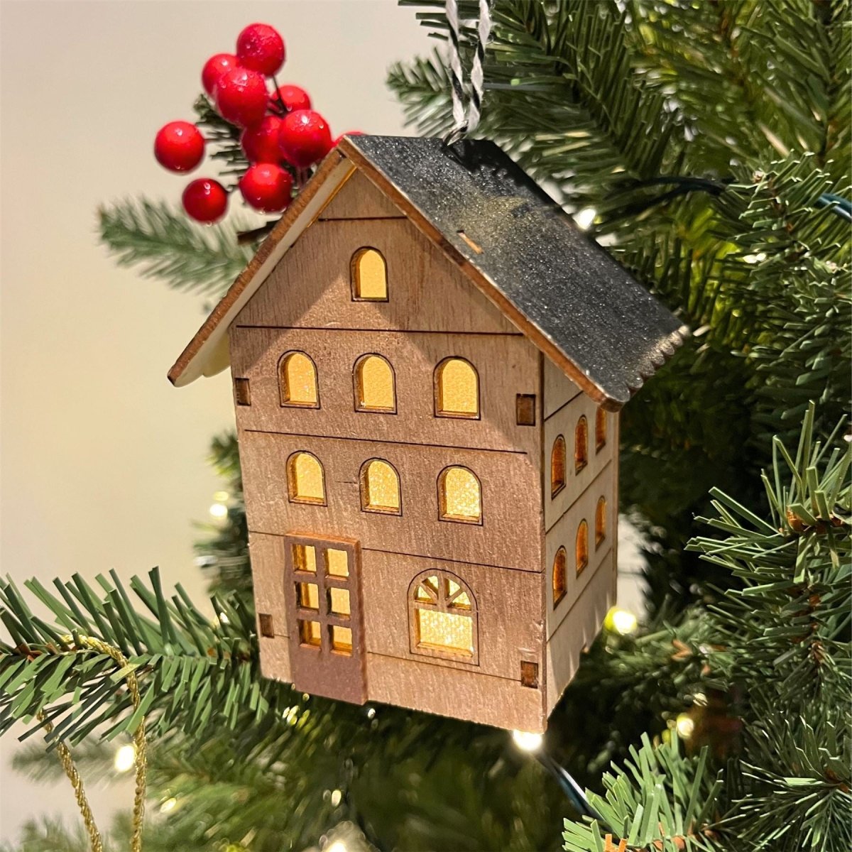 LED WOODEN HOUSE | This mini wooden Christmas house bauble combines rustic charm with modern LED lighting, making it the perfect addition to your tree for a cosy and festive look