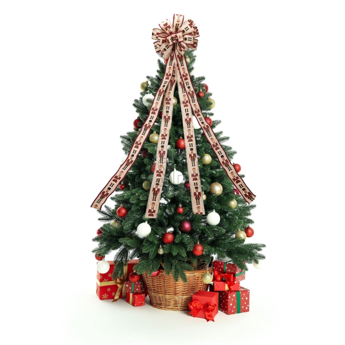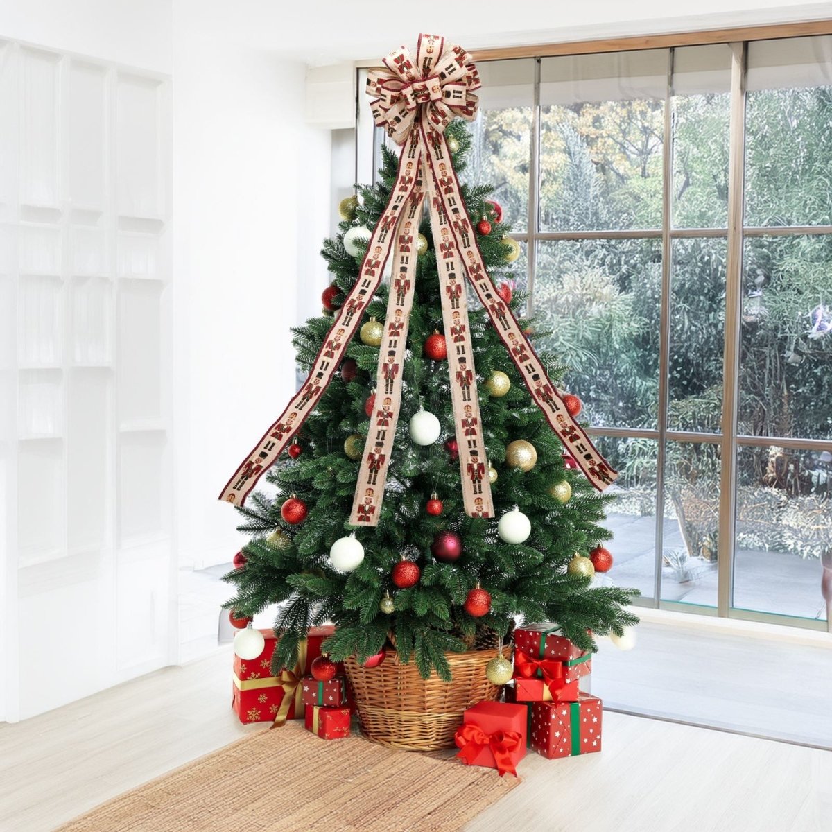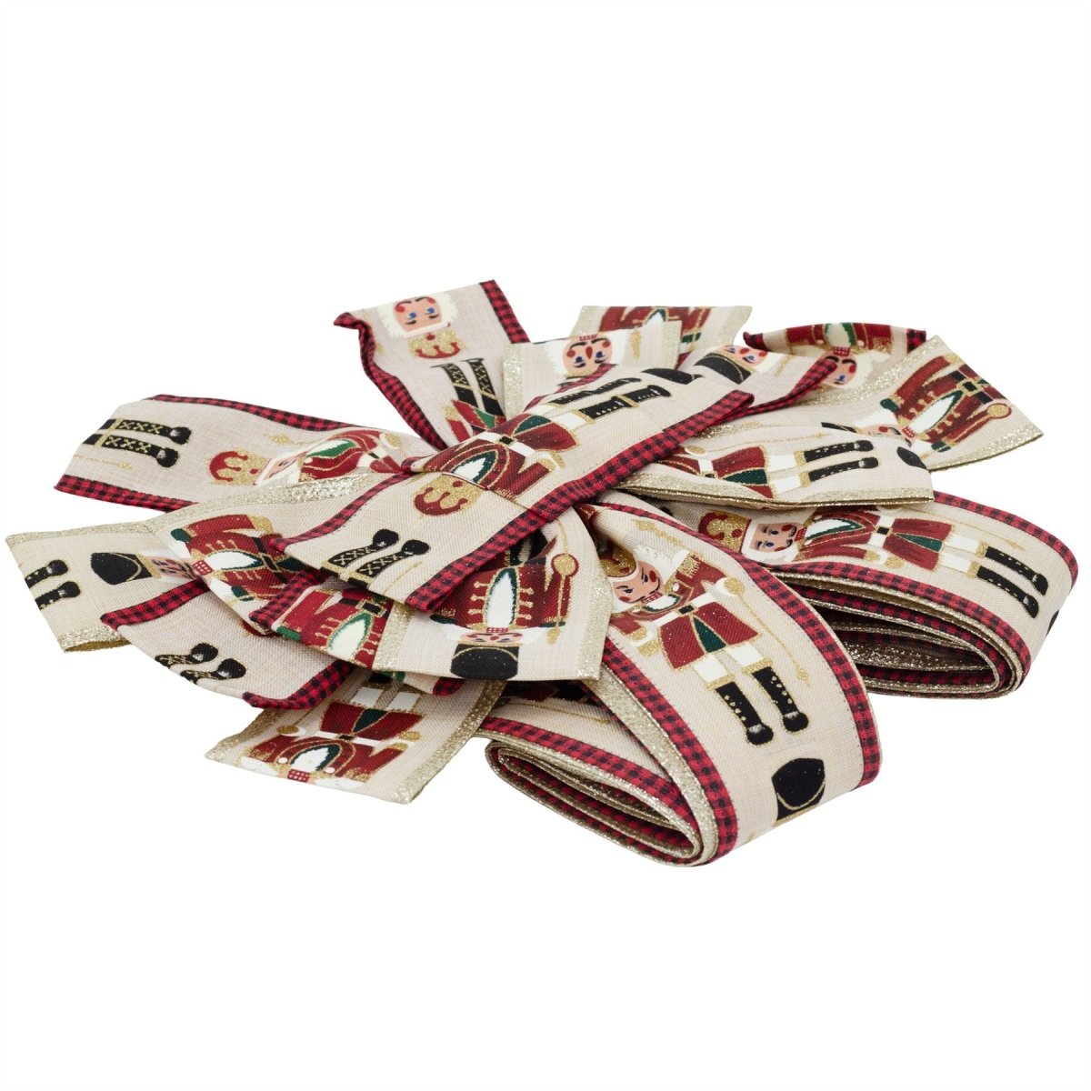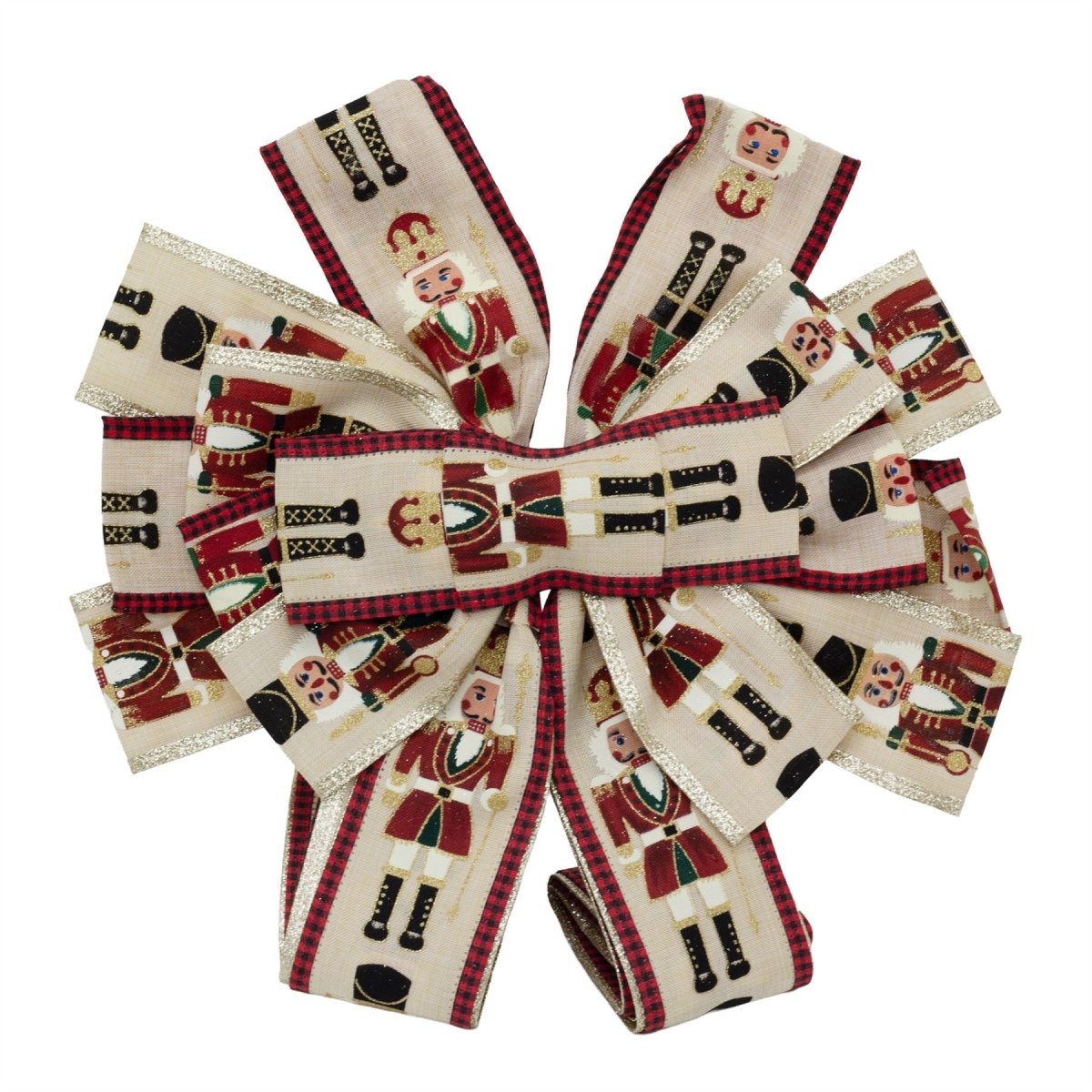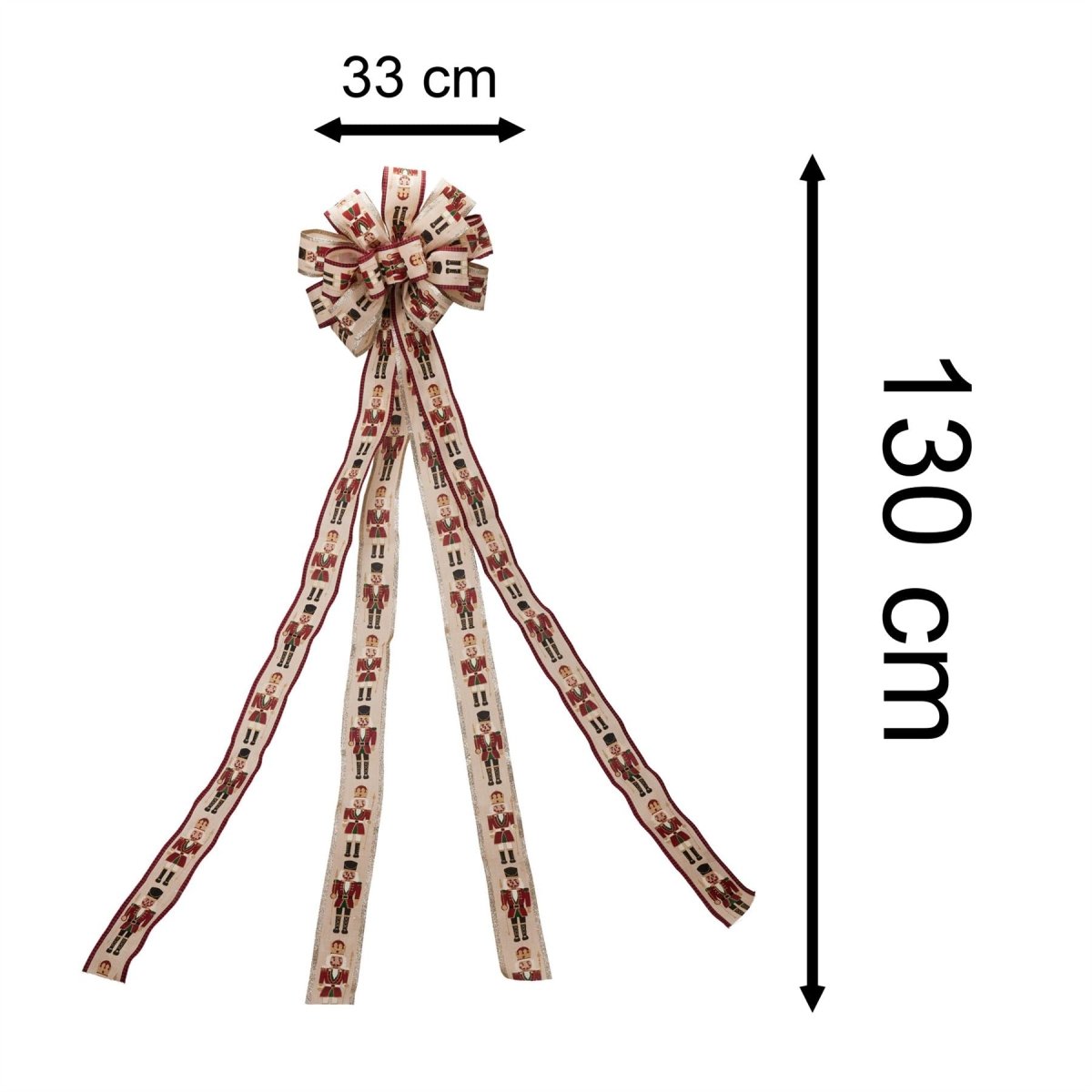 FESTIVE TREE TOP BOW | Large decorative bow featuring charming nutcracker soldier motifs, adding instant holiday cheer and whimsical flair