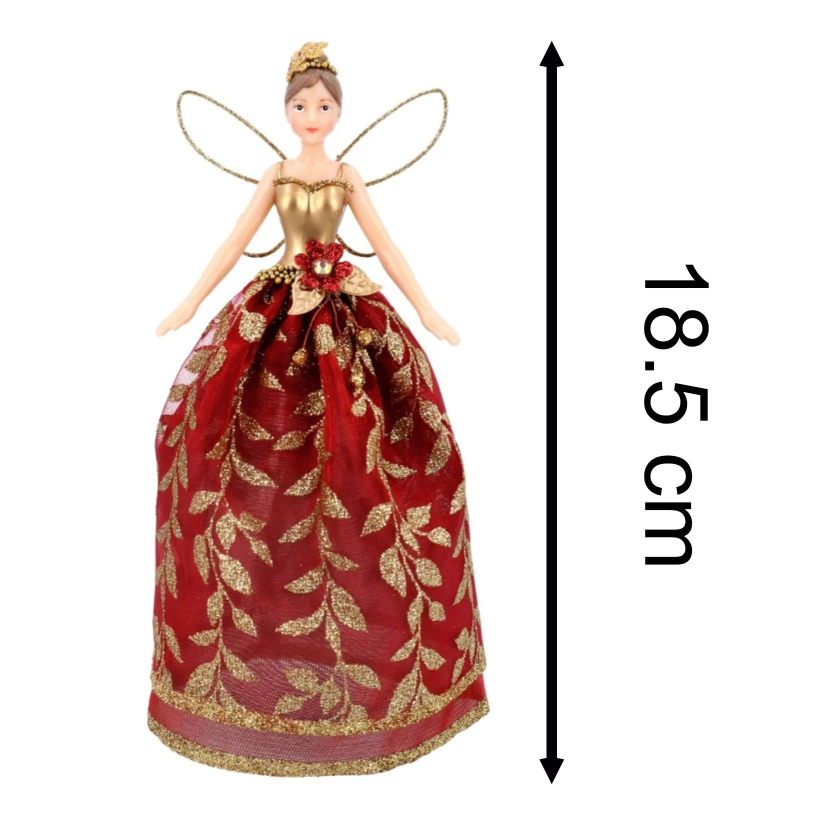 Add a luxurious touch to your festive decor with the Gisela Graham Red & Gold Angel Christmas Tree Topper. Standing at 18cm, this elegant fairy angel wears a rich red dress adorned with delicate gold leaf detailing and glittering golden wings, creating a stunning finishing touch for any Christmas theme