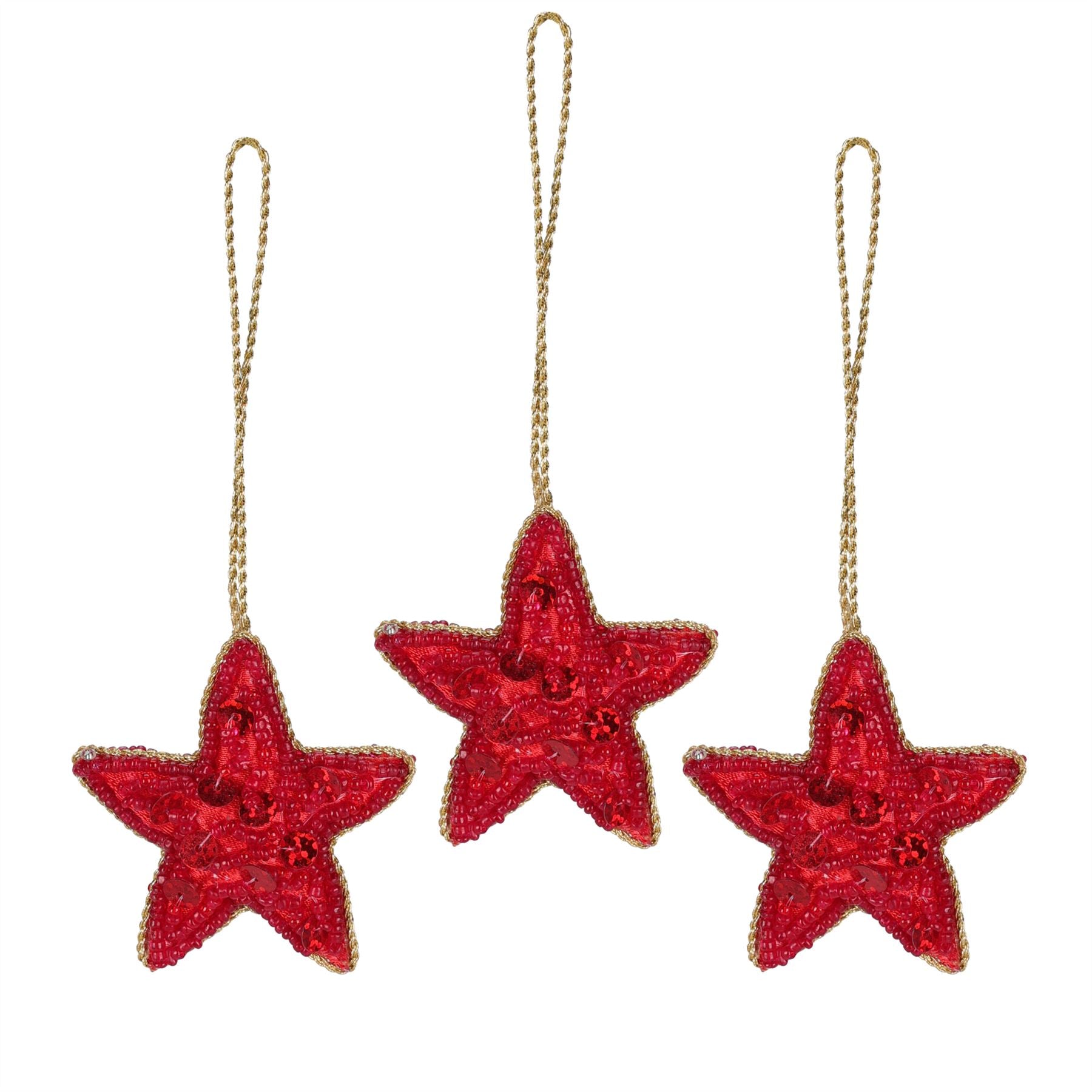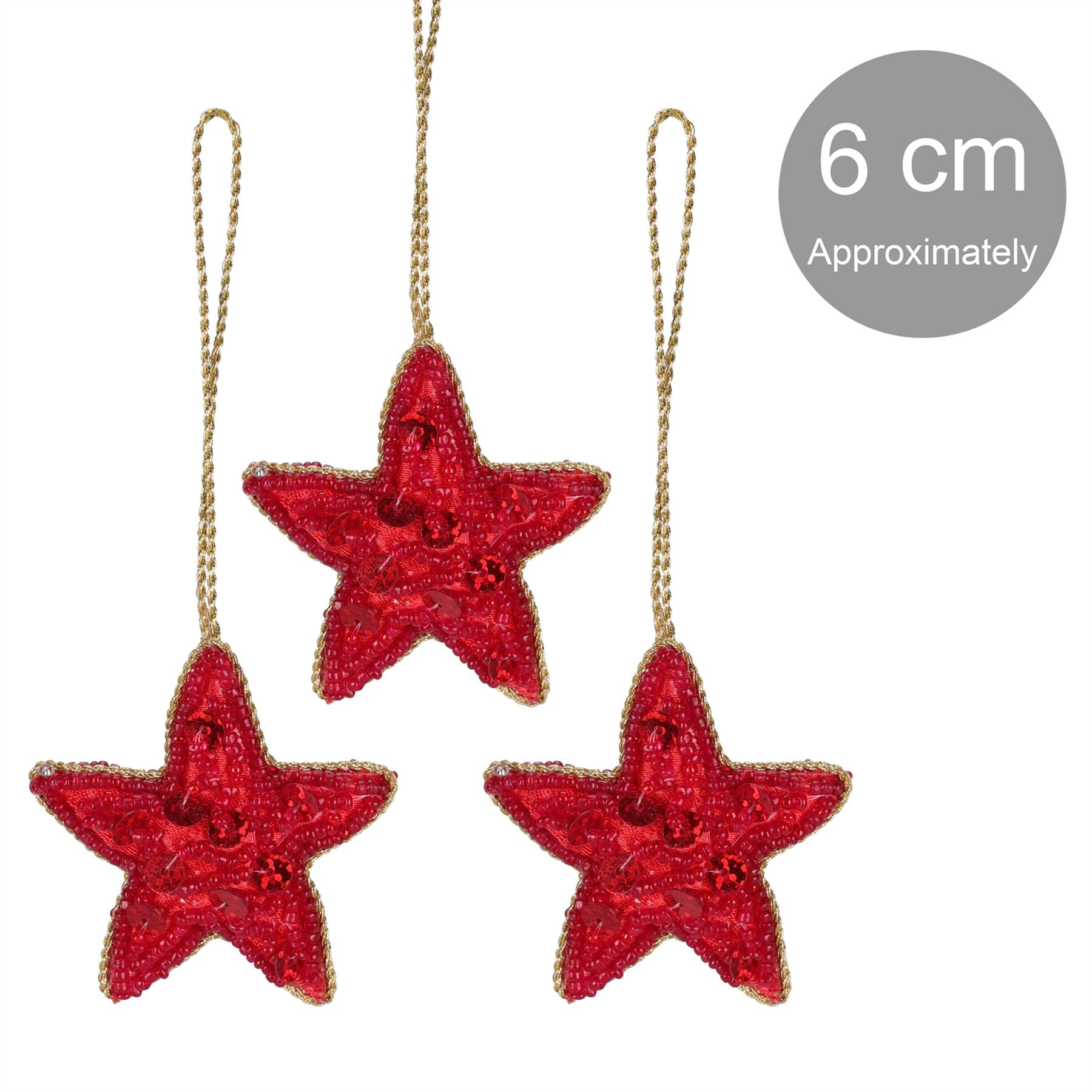 CHRISTMAS TREE ORNAMENTS | Add a splash of festive sparkle to your Christmas tree with these stunning red star-shaped ornaments. Each piece is elegantly covered in sparkling sequins and beads, adding a touch of festive cheer to your Christmas tree