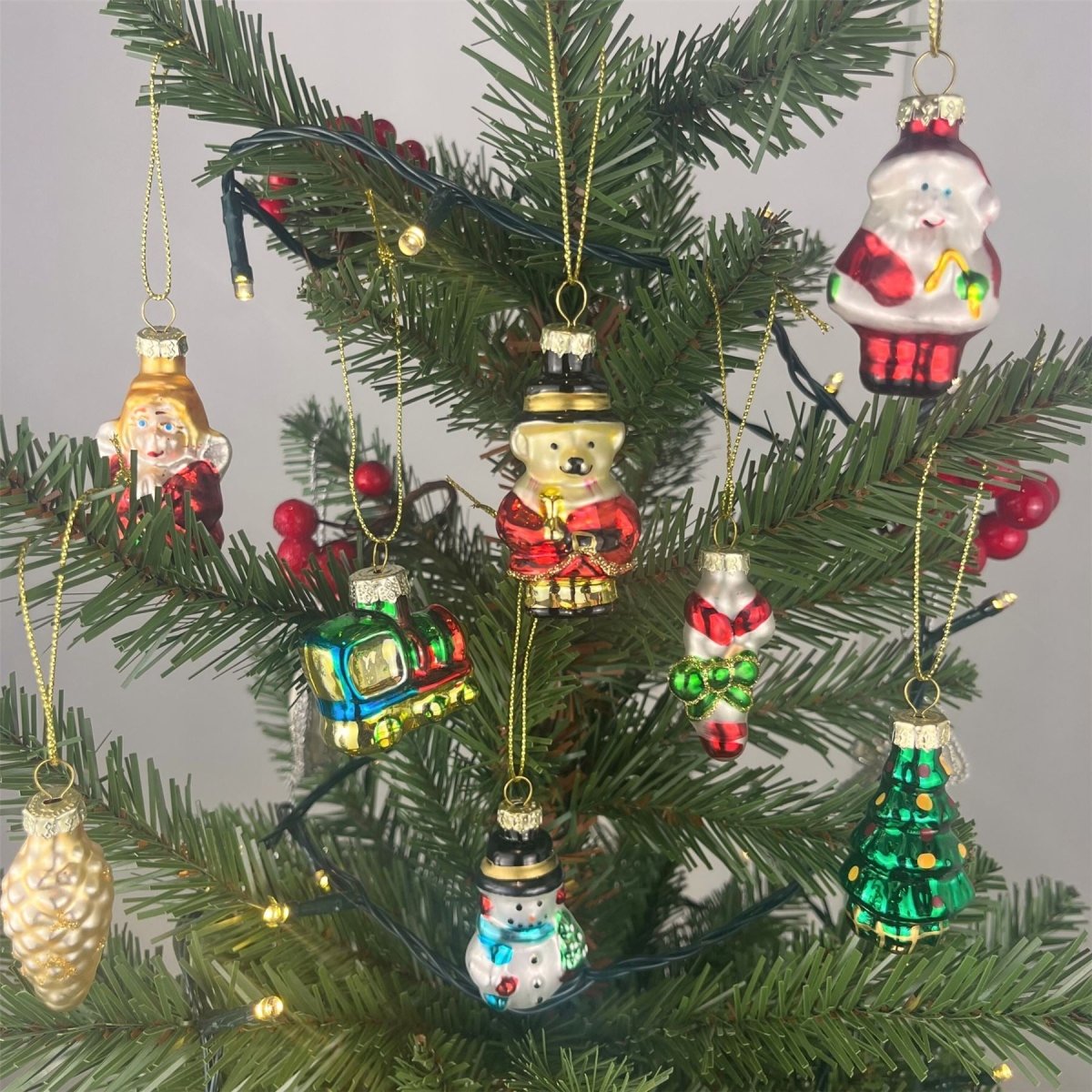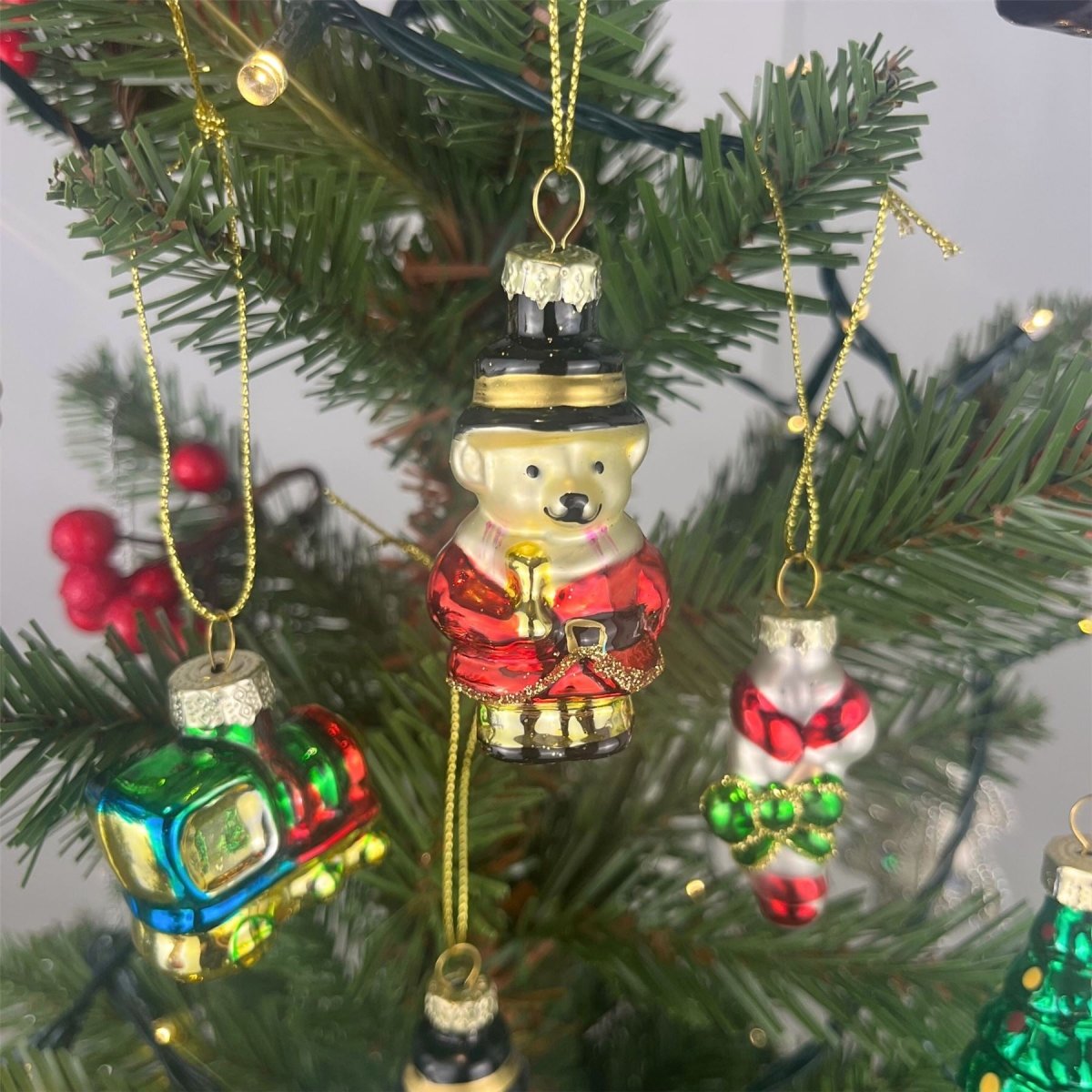 CHRISTMAS TREE ORNAMENT | The set includes eight unique baubles: Christmas Tree, Soldier Teddy, Santa, Candy Cane, Snowman, Angel, Train, and Pinecone, providing a delightful mix of festive designs