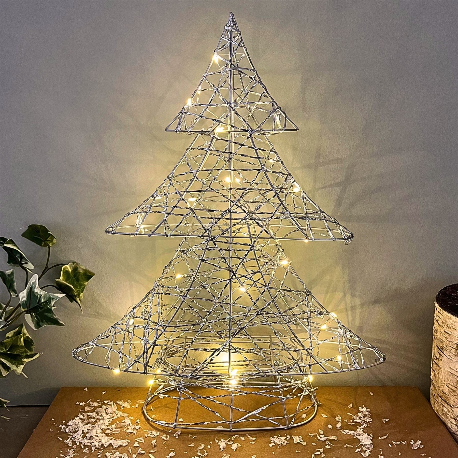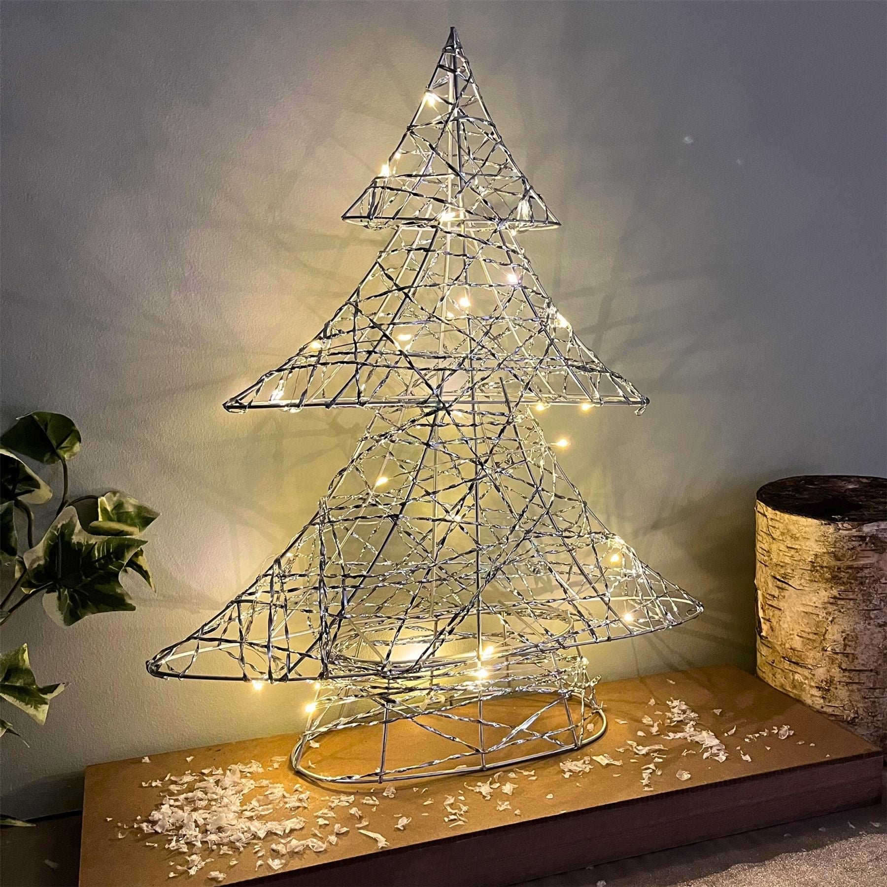 CHRISTMAS LIGHTS | This beautiful silver tree light features 30 mini LEDs that are delicately woven into a metal wire frame, creating a warm, inviting glow perfect for any Christmas setting